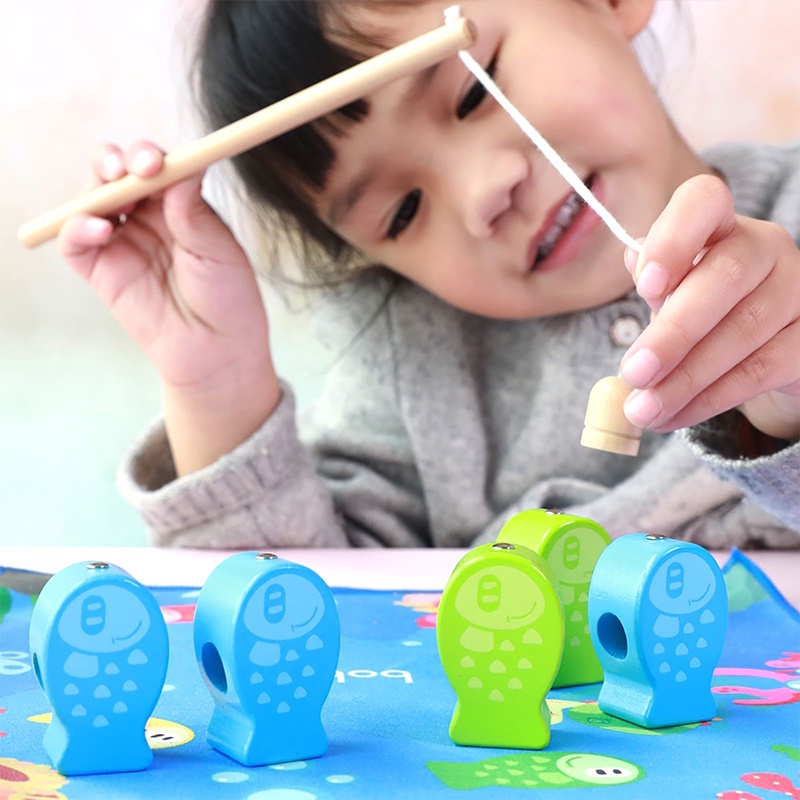 Premium 4in1 Count&Catch Fishing Game/Montessori Early Learning Sorting Toy/Wooden Magnetic Balance Stacking Toy Set