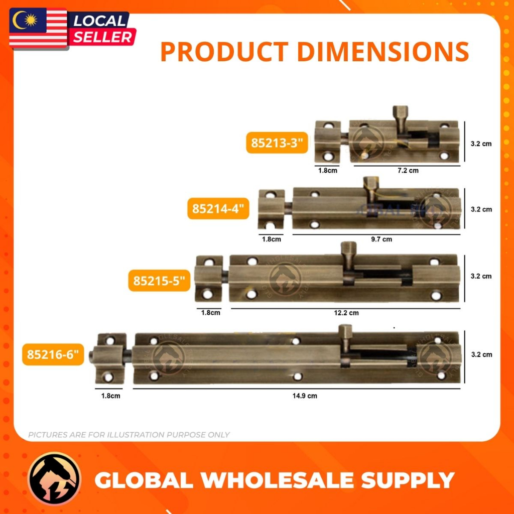 Premium Antique Brass Slide Door Latch Door Shutter Door Lock Window Lock Selak Pintu Kayu Rumah Solid Cast Brass Barrel