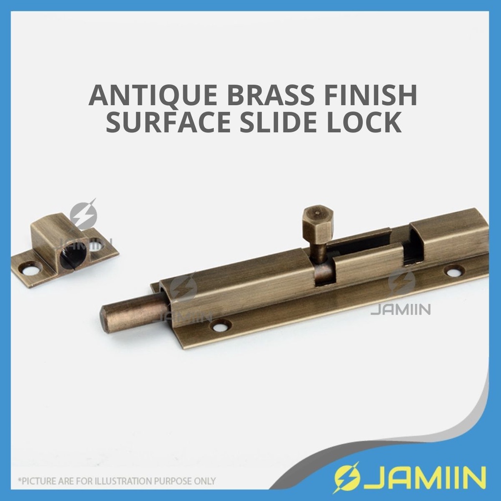 Premium Antique Brass Slide Door Latch Door Shutter Door Lock Window Lock Solid Cast Brass Barrel Selak Pintu Kayu Rumah