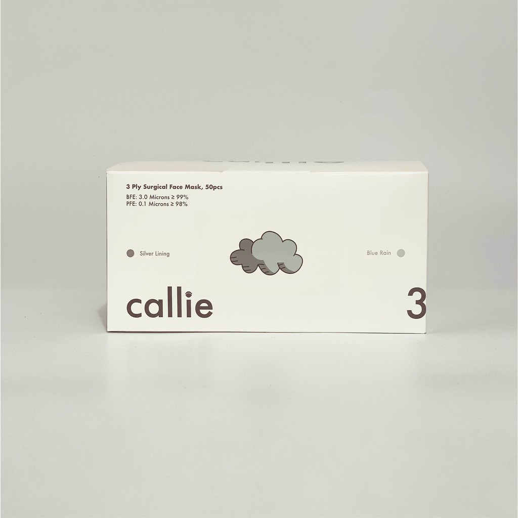 Premium Callie 3 Ply Surgical Face Mask 50pcs (Silver Lining Grey & Blue Rain)