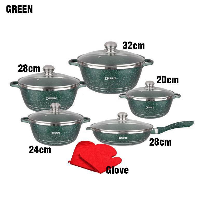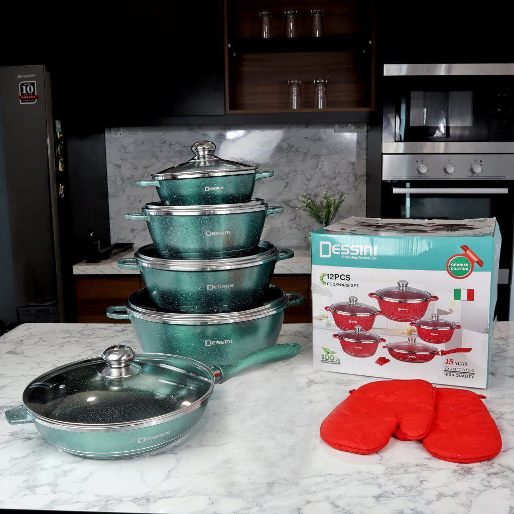 Premium Dessini Cookware Set (12PCS) Non-stick Cooking Pot Frying Pan Set Periuk Dessini Berkualiti Tinggi