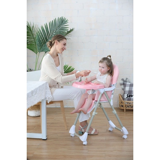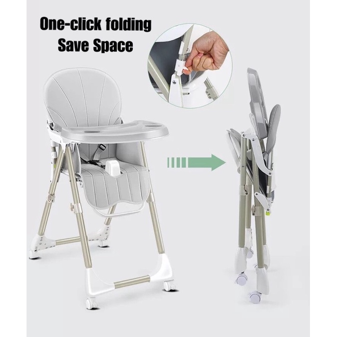 Premium Foldable Baby Chair Adjustable Baby Dining Chair with wheel kerusi makan bayi