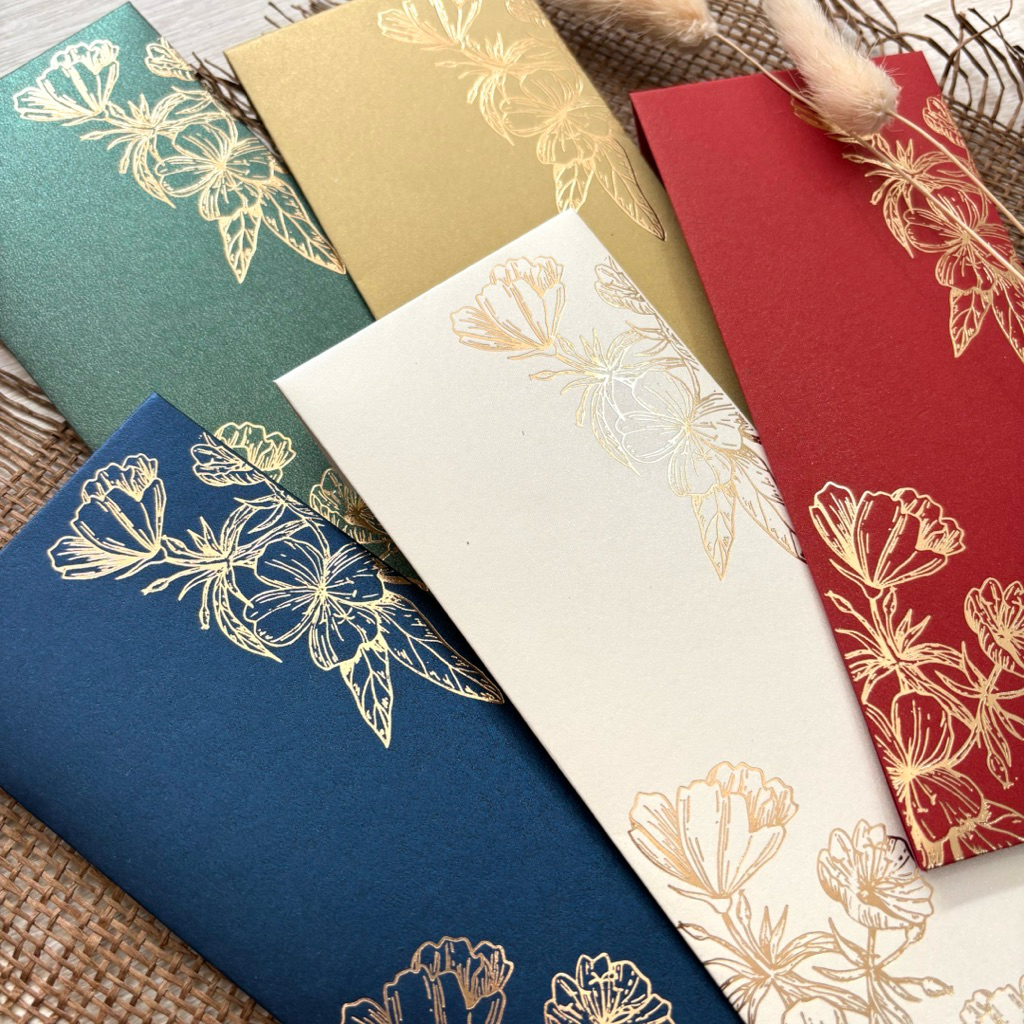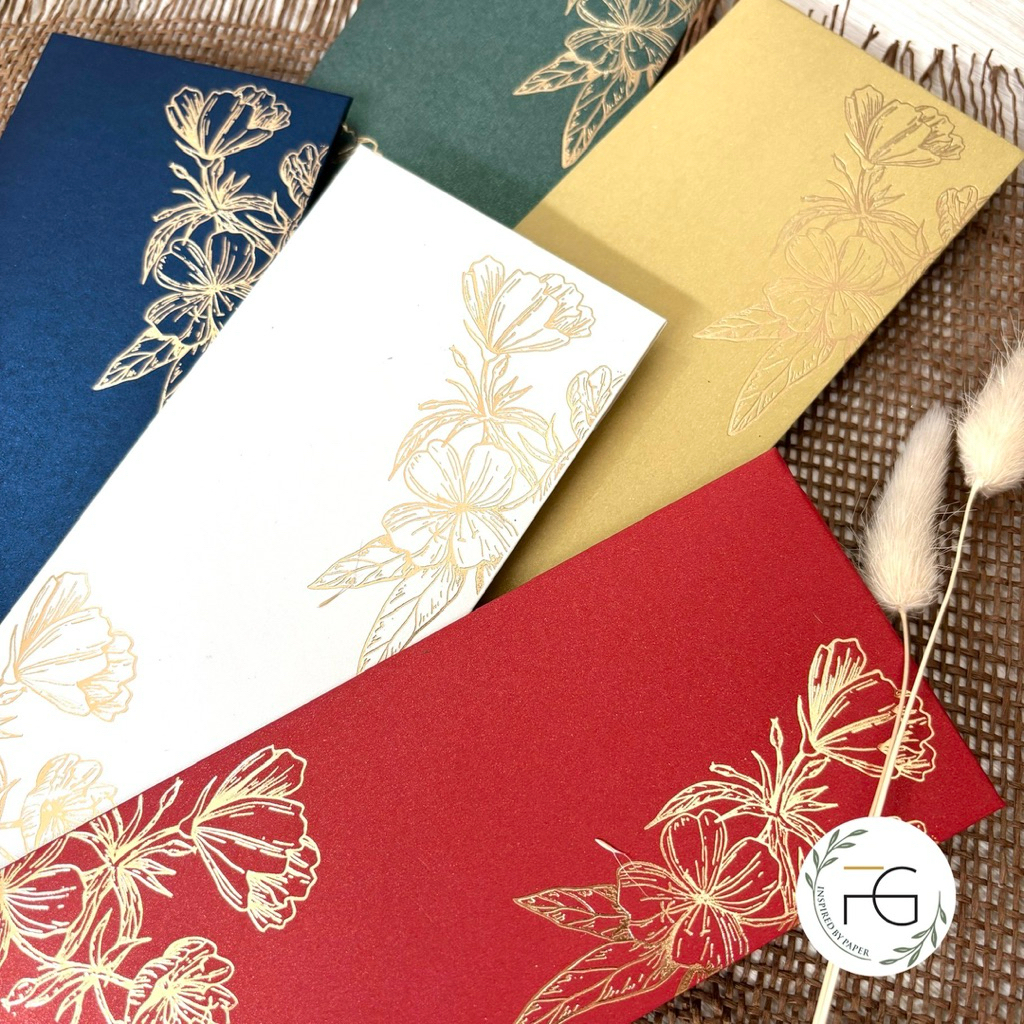 Premium Gold Floral Angpau Money Envelopes 5pcs 7.5x17cm by fgpaper Sampul Duit Raya Premium