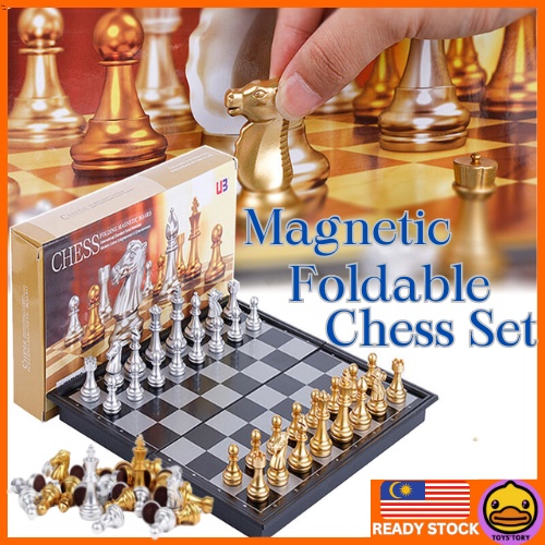 Premium Gold & Silver Magnetic and Folding Chess Set Tournaments Size Chess Set International Chess Set Table Top Game
