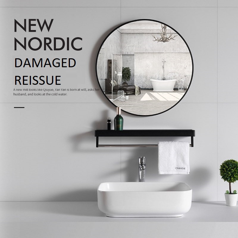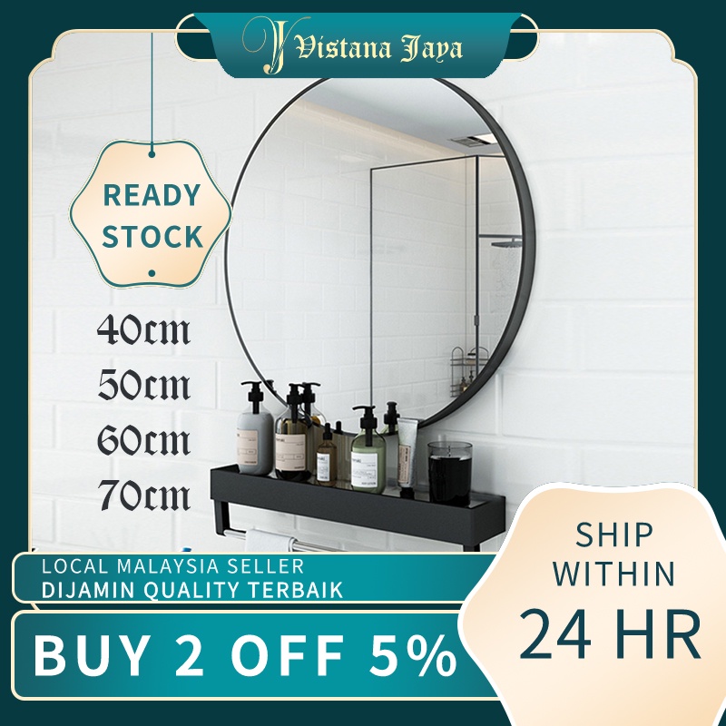 Premium Modern Deluxe Round Mirror Wall Bathroom Toilet Hitam Kaca Cermin Bilik Air Makeup Mirror Cermin Bulat