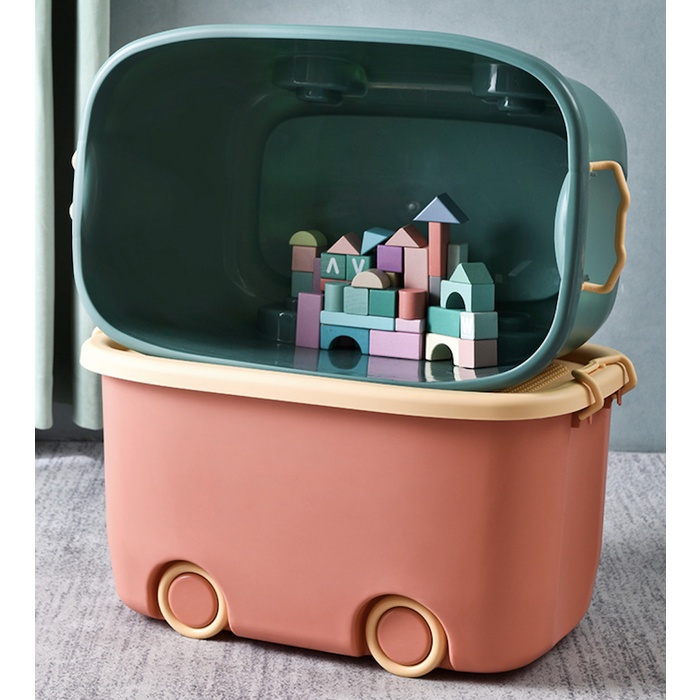 Premium Multifunctions Stackable Toy Storage Box Organiser With Wheels Blue