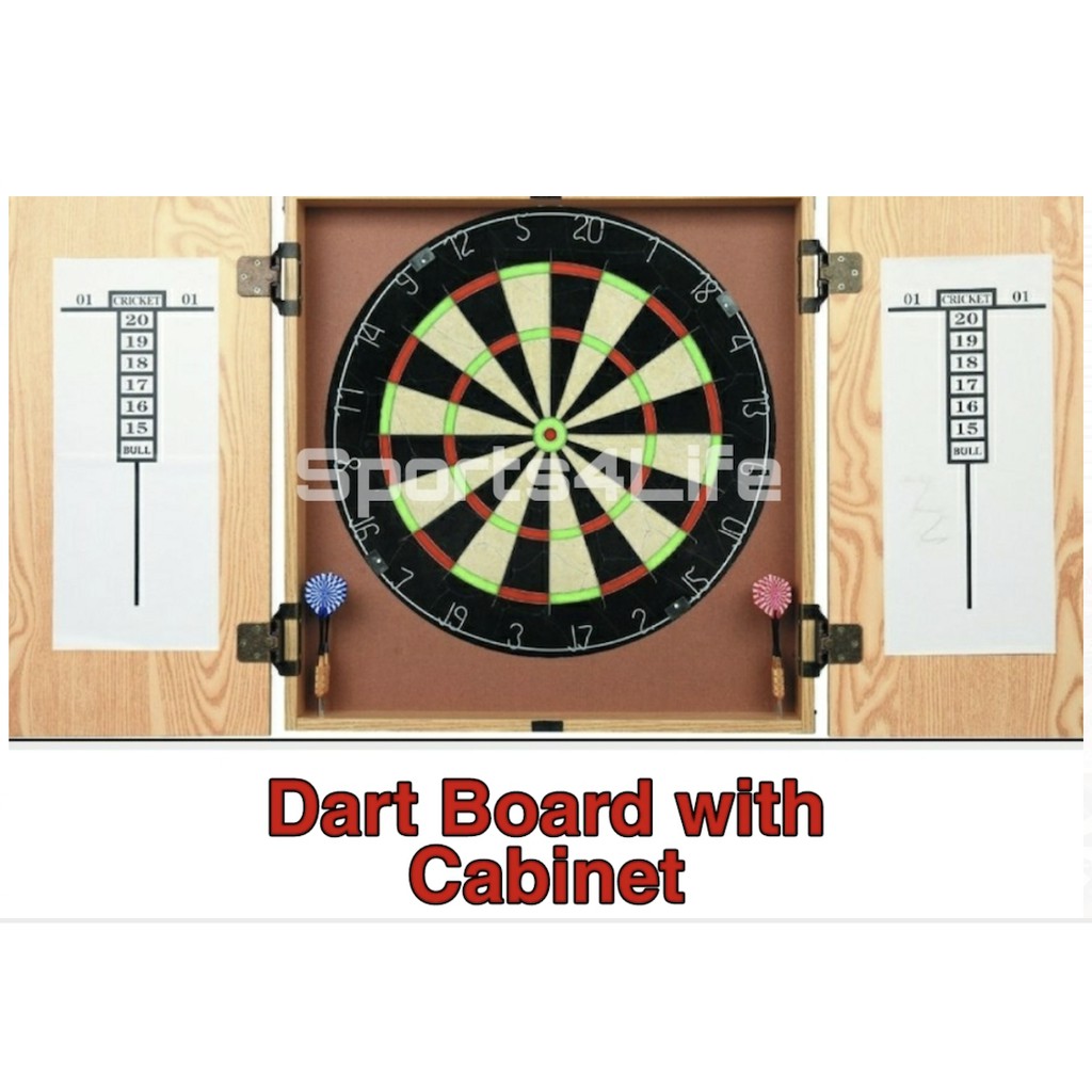 Premium Official Size Dart Board with Cabinet [Heavy Duty Wooden Dart Board Case] with Score Boards 18" x 1.5" DartBoard