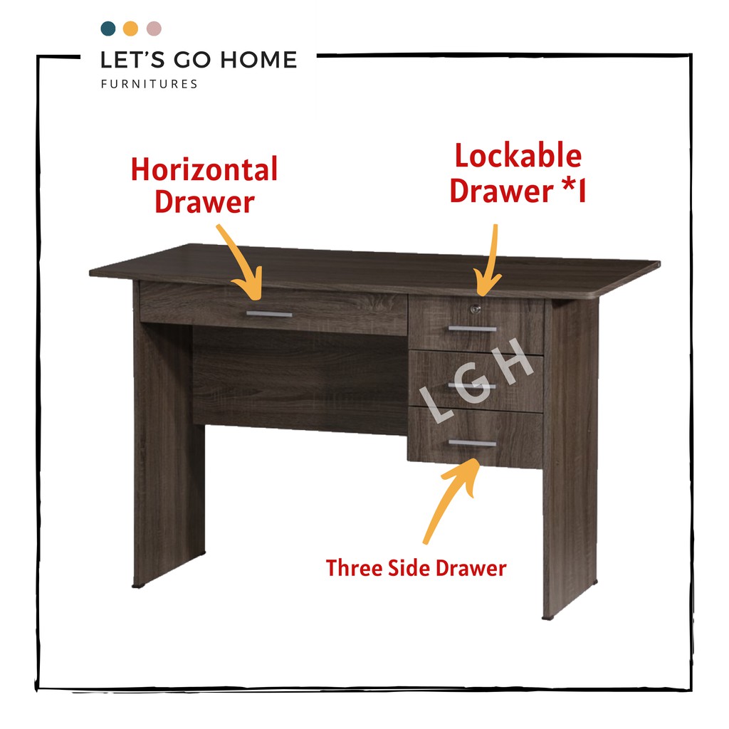 Premium Quality Study Table w/ 3 Side Drawer + 1 Horizontal Drawer | Work Desk Study Desk | Computer Table | Meja Tulis
