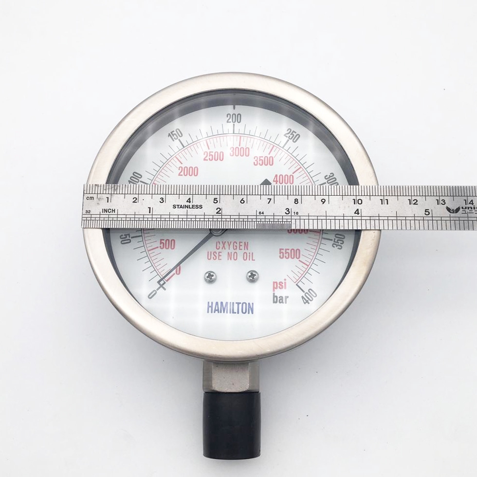 Pressure Gauge 0 ~ 400 bar / 0 ~ 5800 psi 1/2" NPT Bottom 4" Dial Size SS 316