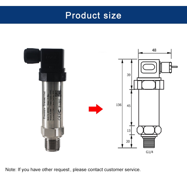 Pressure Transmitter Water Oil Air Pressure Sensor Output 4-20mA 0-5V 10V -1-1000bar Thread M20*1.5