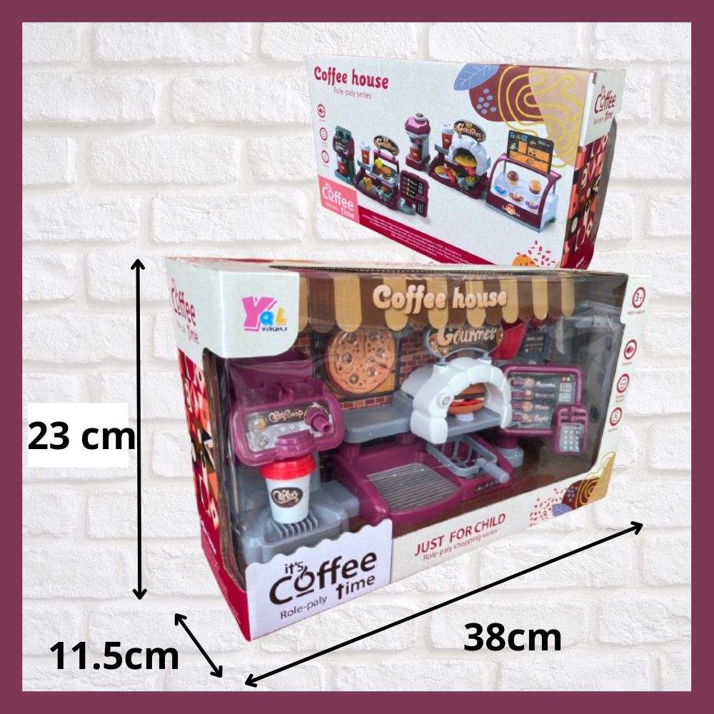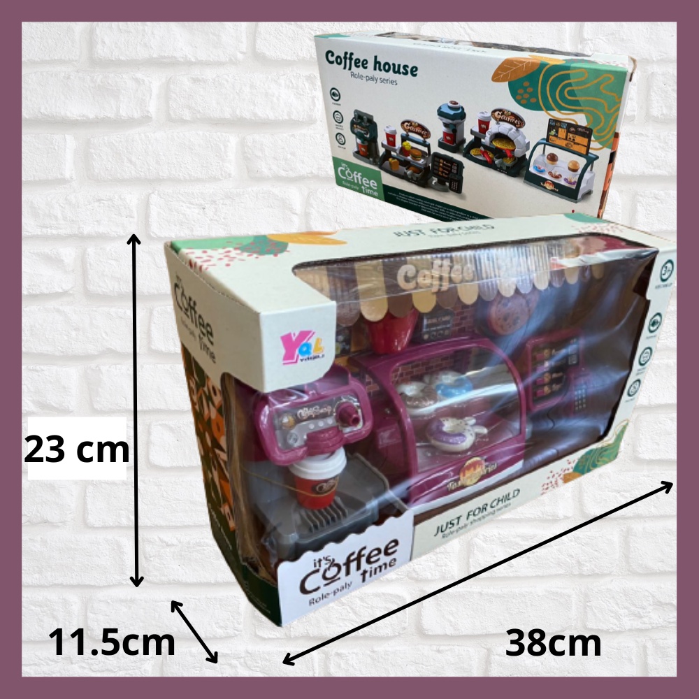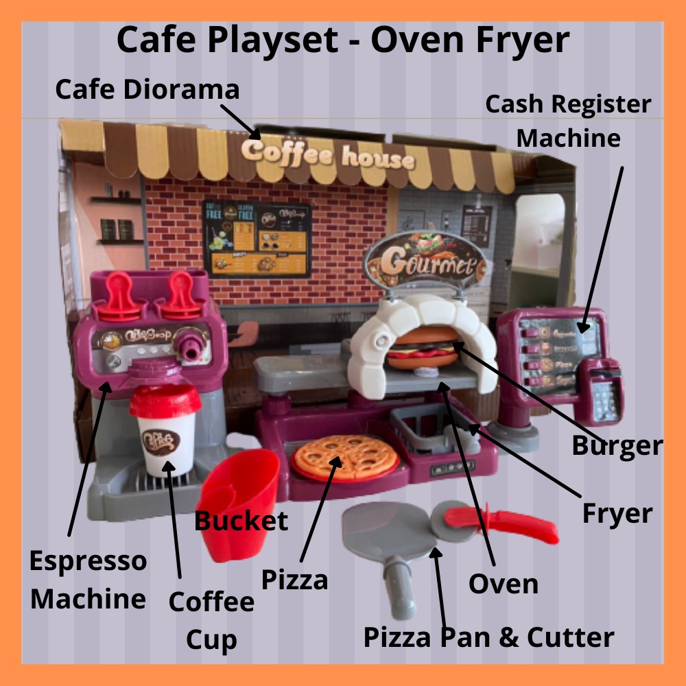 Pretend Play Coffee Shop Cafe Cashier Toy with Coffee Machine Dessert Cake Donuts Countertop Pizza Oven Permainan Masak