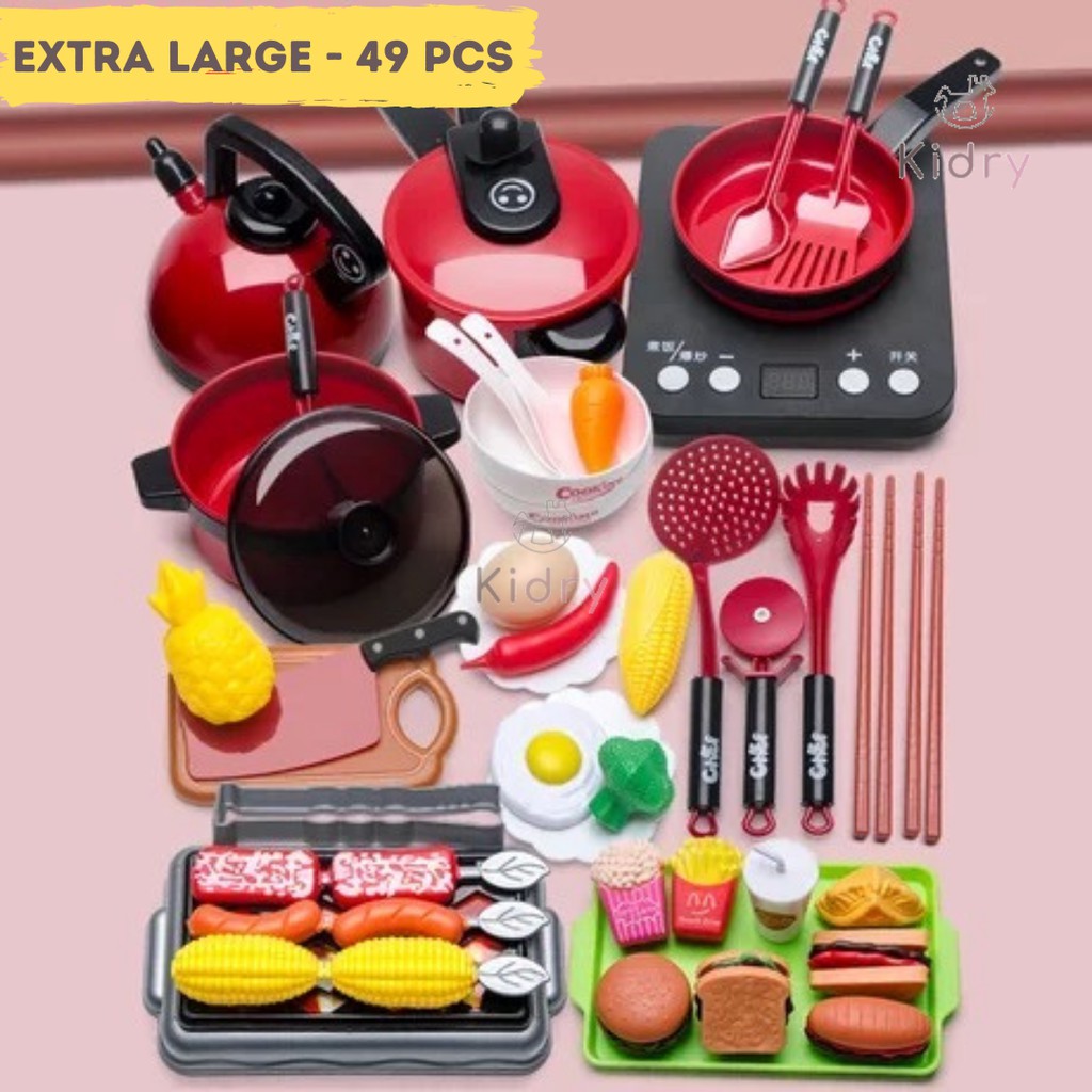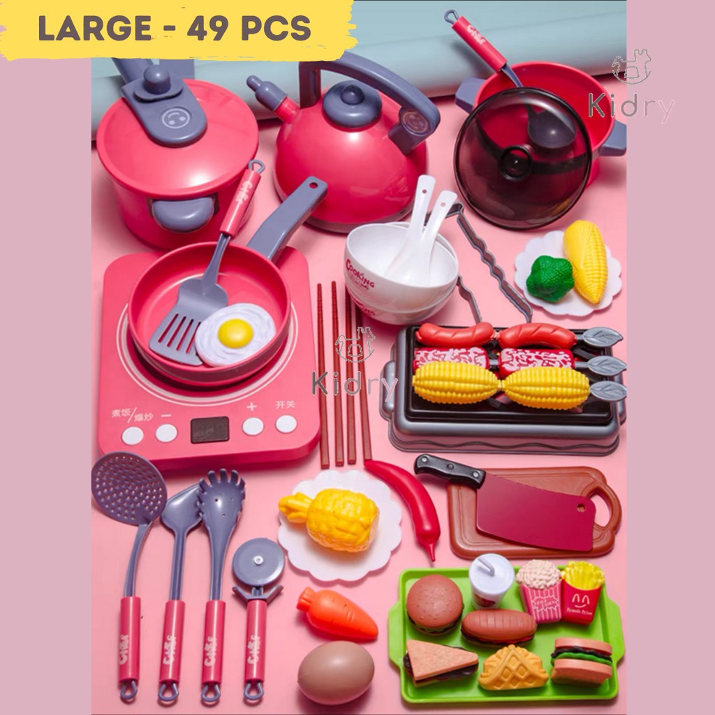 Pretend Play Home Mini Kitchen Playset Cooking Set Cooker Utensils Play Cut Food Toy Gift for Children| Mainan Dapur