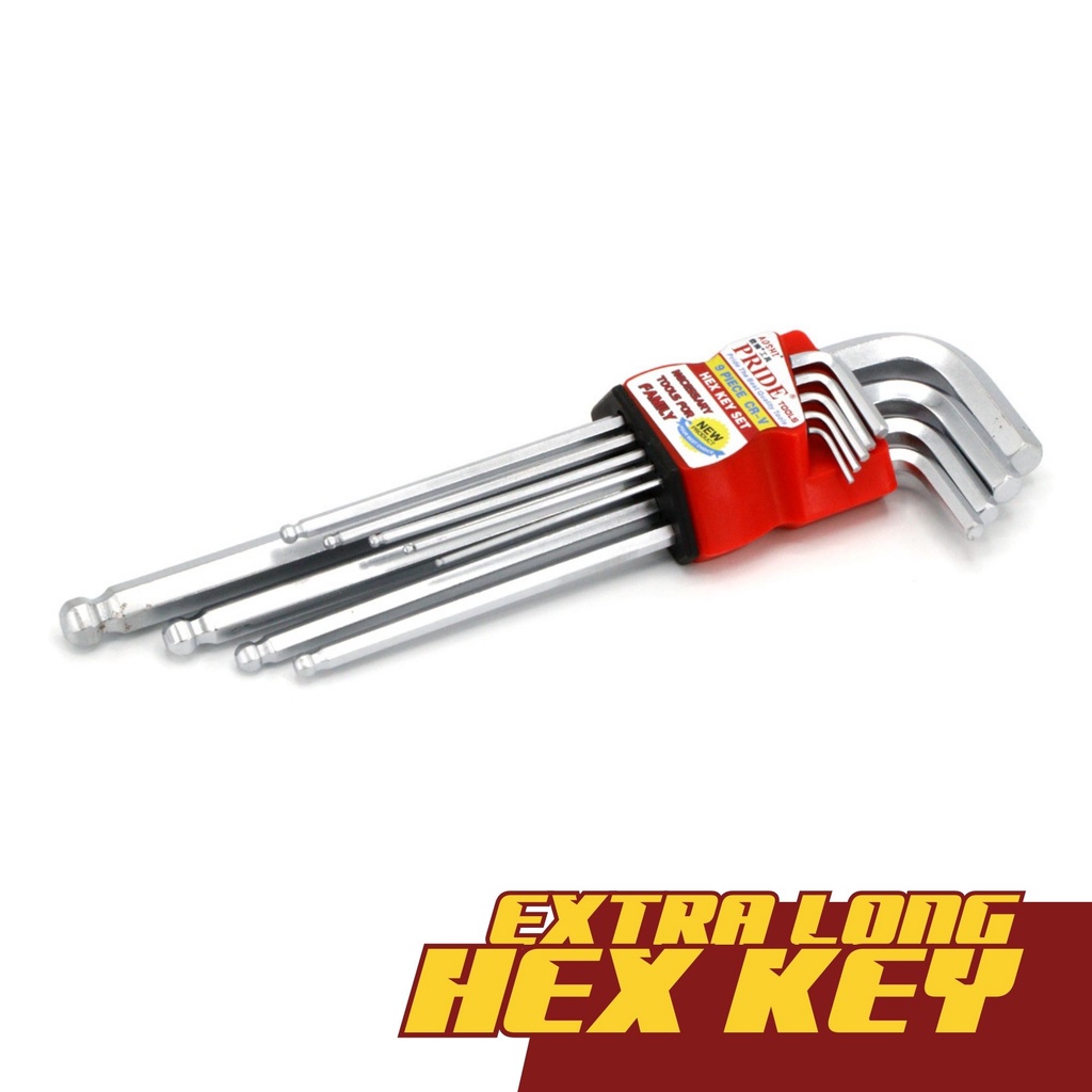 Pride Wrench Set Tools 9pcs Extra Long Hex Key Torx Allen Star Key Ball End CRV Chrome Vanadium Alatan Tangan Spanar