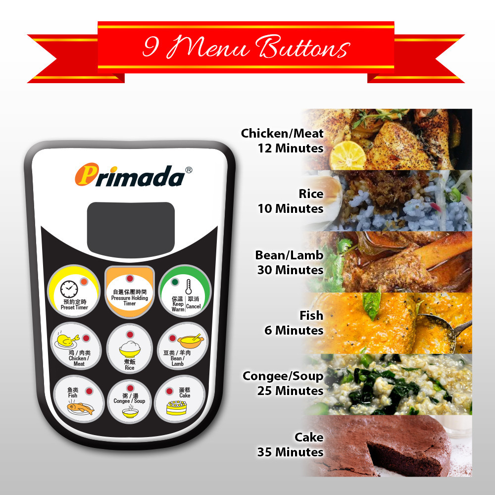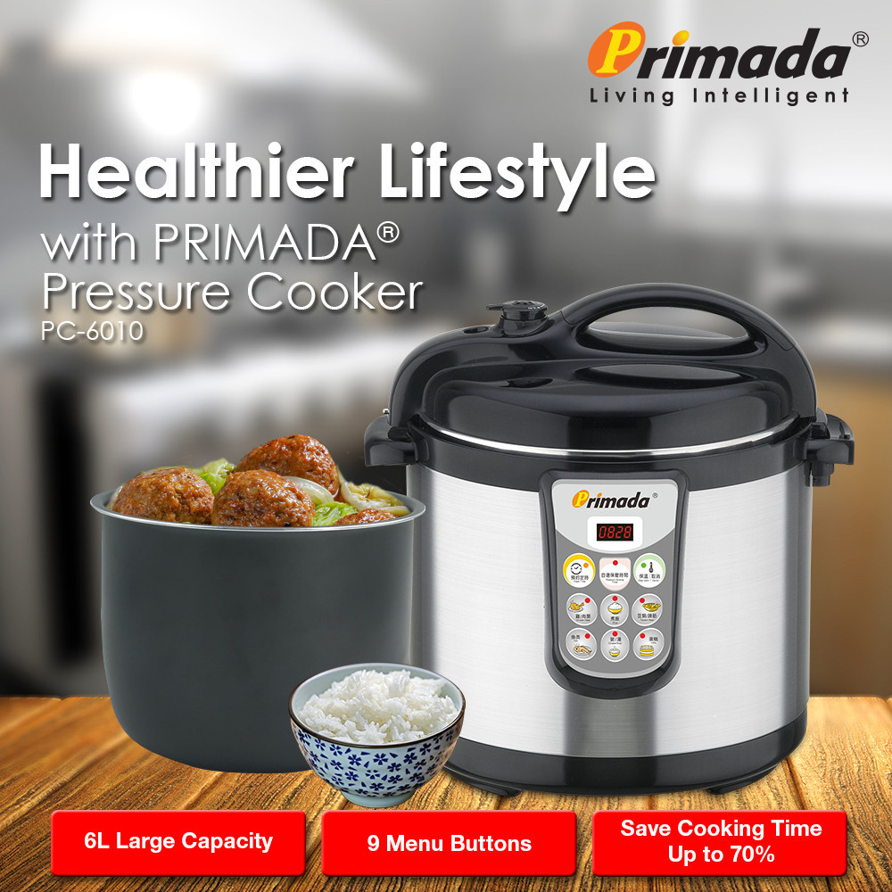 Primada 6 Liter Dual Pots Pressure Cooker PC6010 (1 NON STICK POT + FREE 1 STAINLESS STEEL POT)