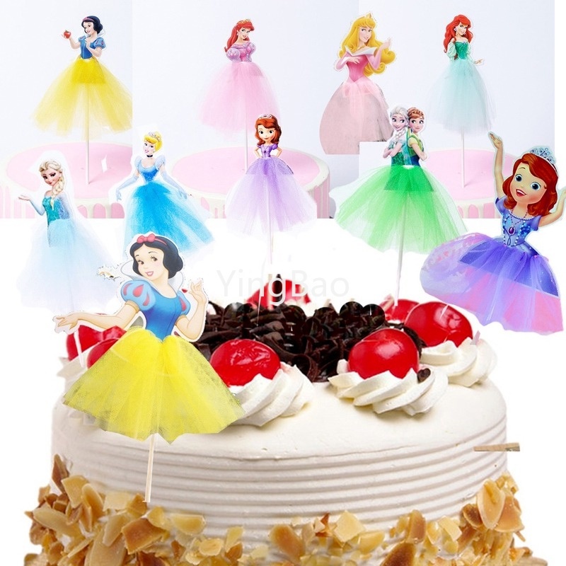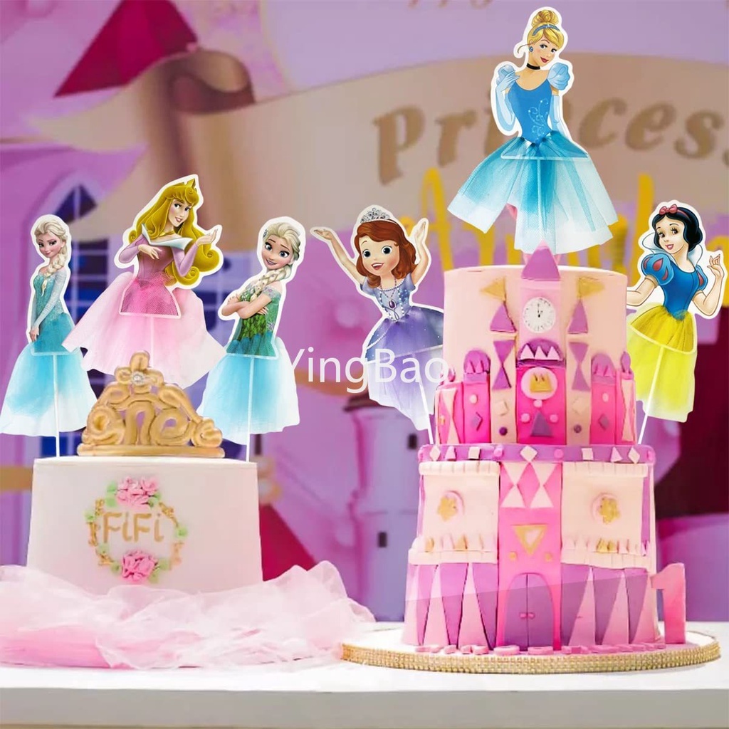 Princess Cupcake Topper Picks Anna,Ariel ,Cinderella, Elsa, Sofia ,Snow White Princess cake Toppers For Kids Happy Birthday Supplies Cake Decoration