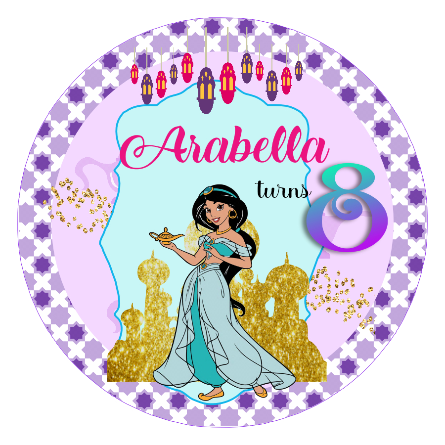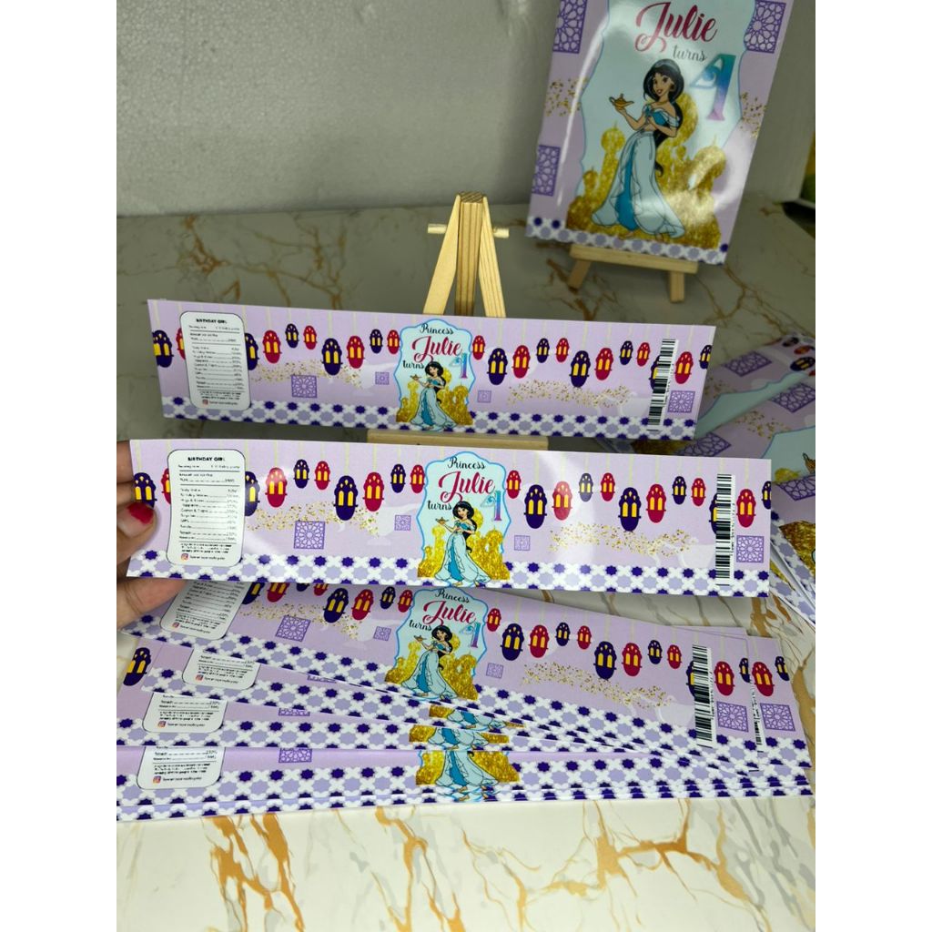 Princess Jasmine Aladdin Disney Theme Goodiebag Water Bottle Label Birthday Stickers for Birthday Party