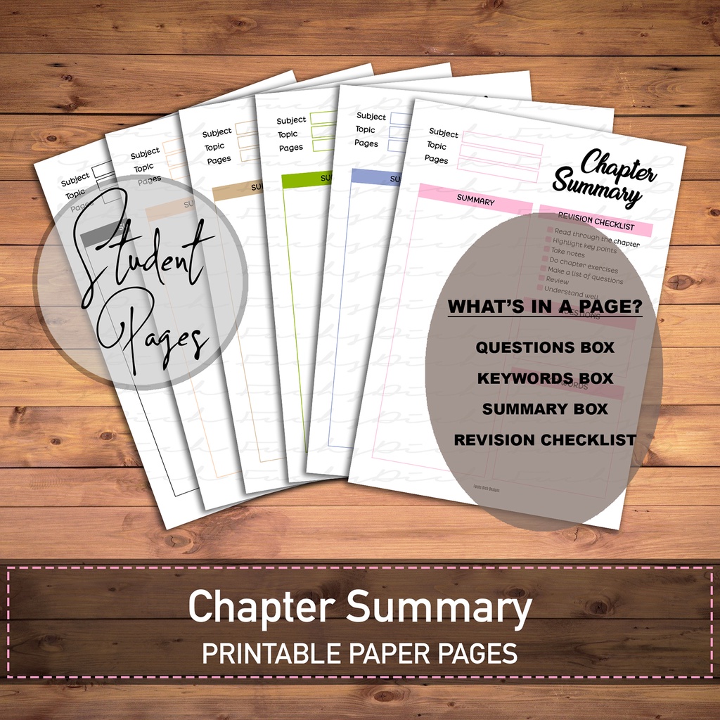 Printable Chapter Summary | Study Paper | Student Printable | A4 Notebook Paper | FuchsDich | Digital Download | Planner
