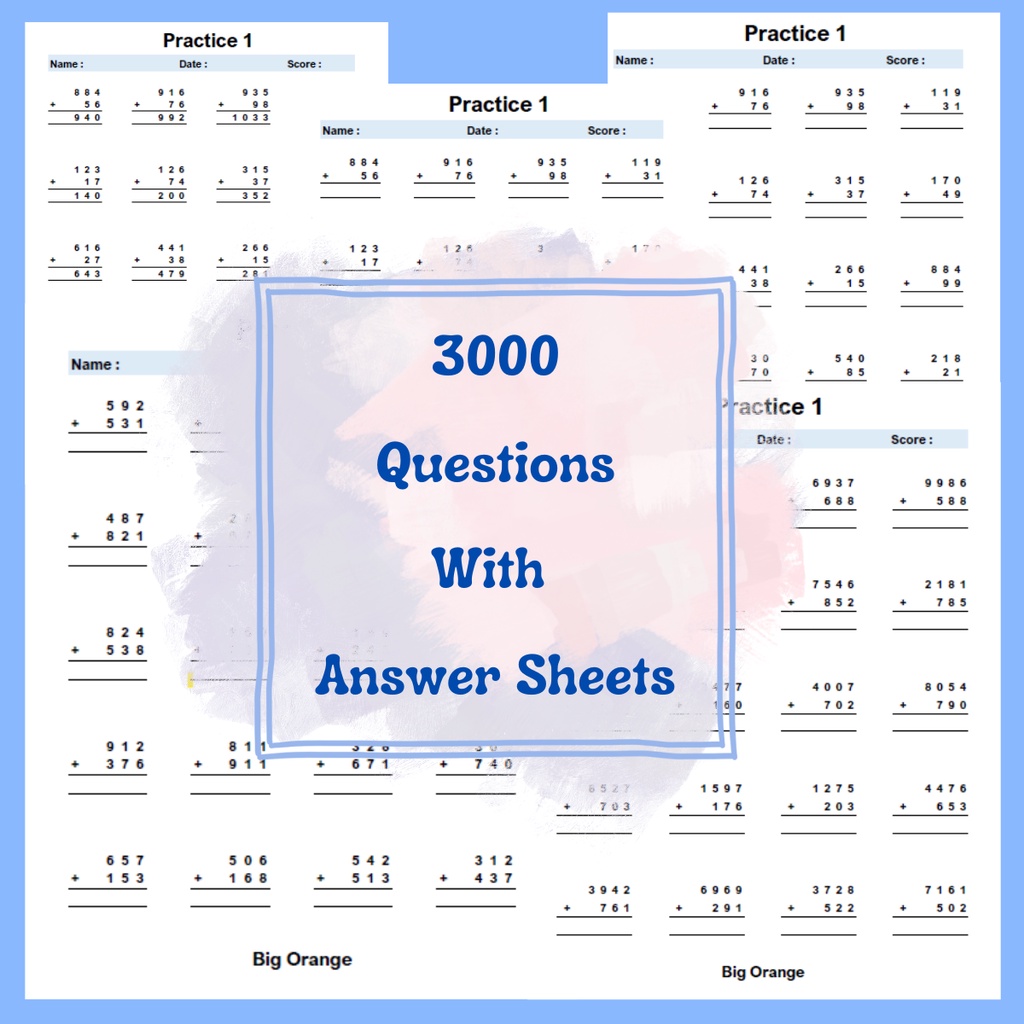 Printable Math Worksheet - 3000 Question with Answer Sheet , Preschool Worksheet