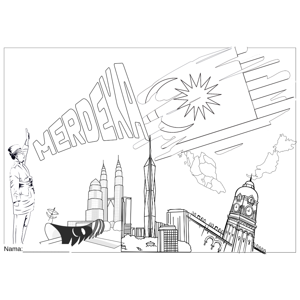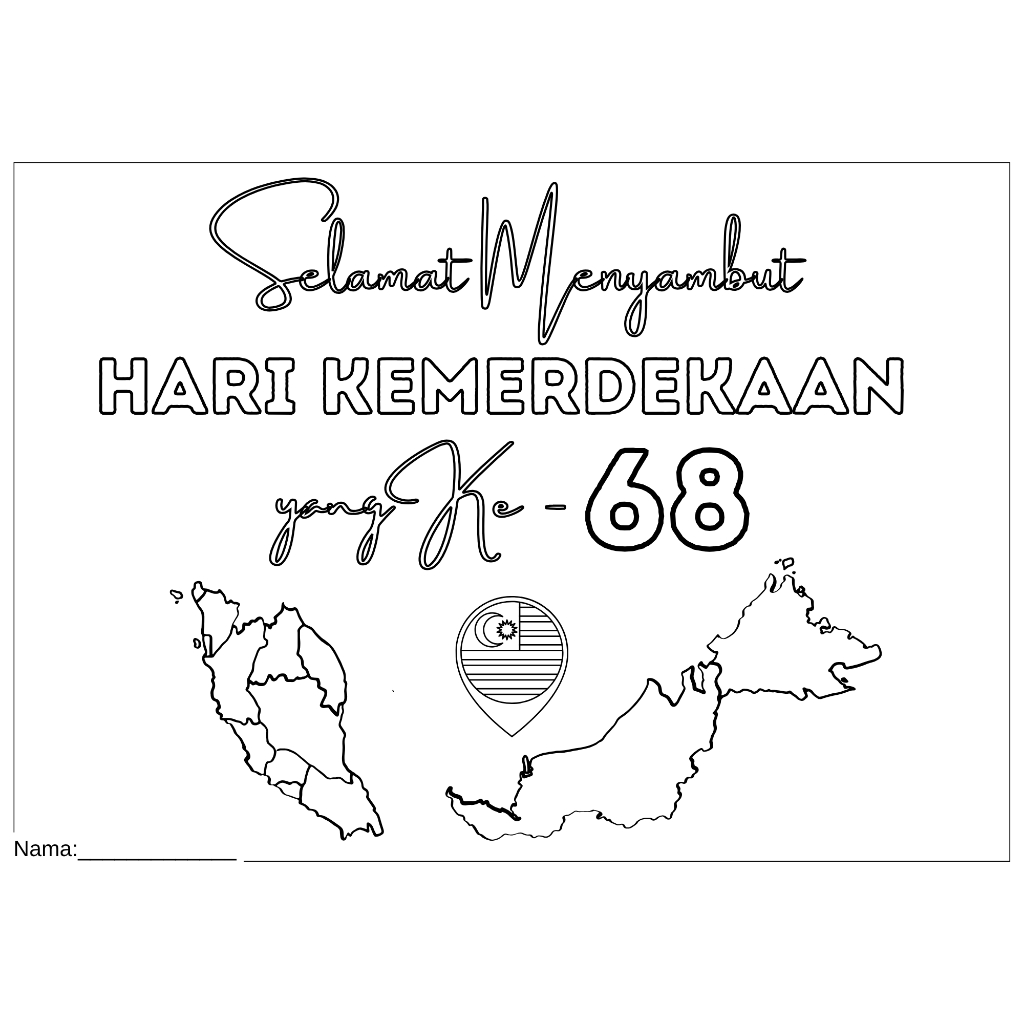 Printable Merdeka 2025 Colouring Five A4 size. Kertas Mewarna [Digital file]