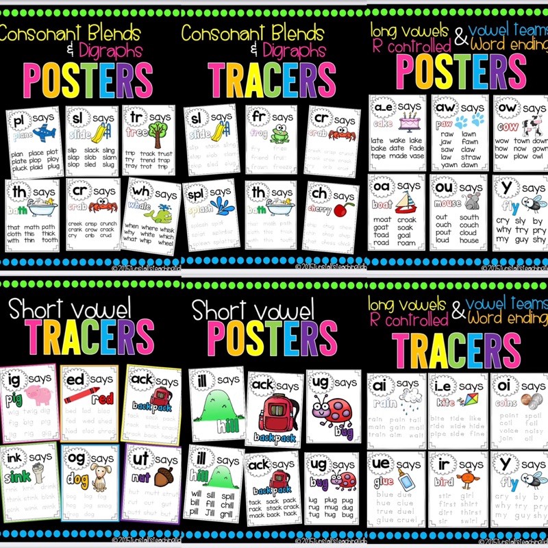 Printable Phonics CVC Poster 6 Set 400+ Sheets
