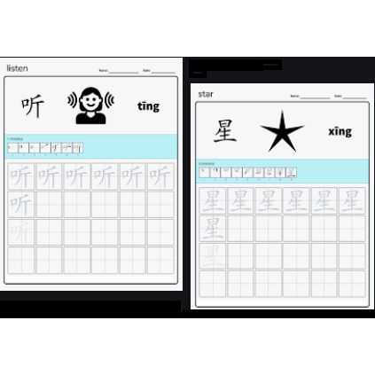 Printable Worksheet Mandarin Chinese Strokes for Preschool