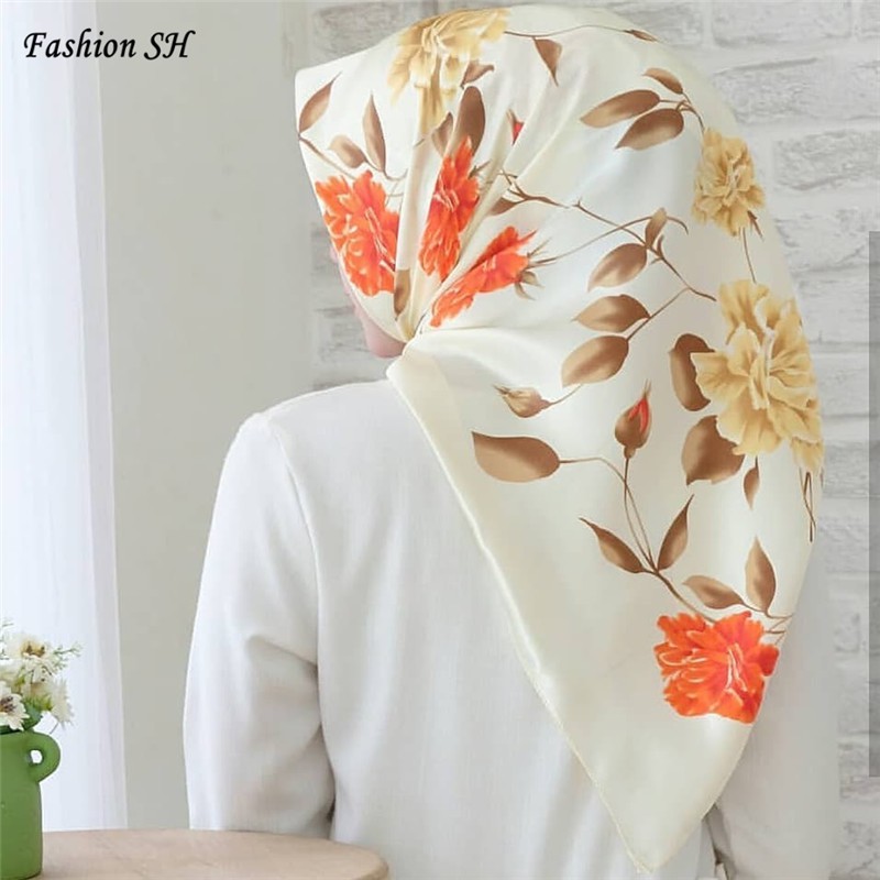 Printed Scarf Bawal Tudung Silk Shawl Floral minimalist pattern Satin hijab 90x90cm M90088