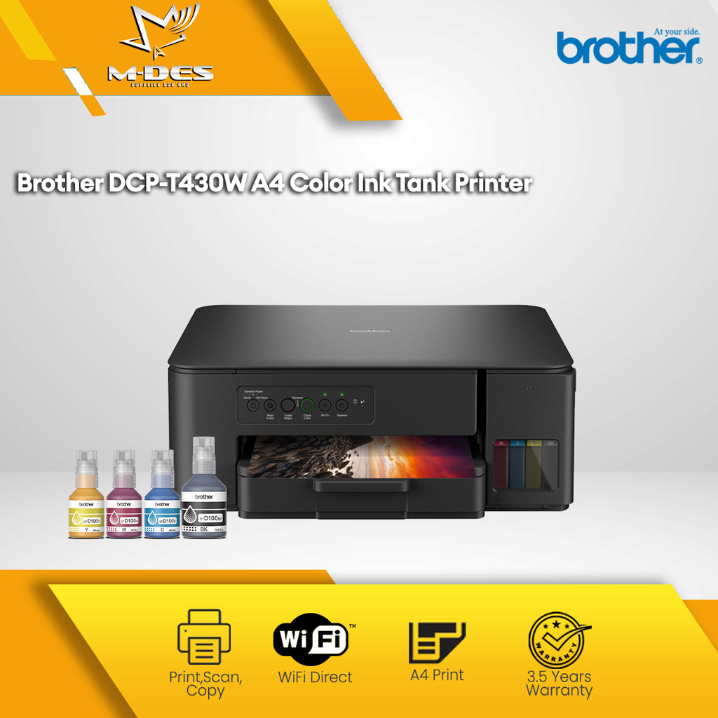 Printer InkTank Brother DCP-T430W -A4 3-in-1 Color Inkjet Printer/Refill Ink Tank/150 Sheets Paper Tray/ Print Scan Copy