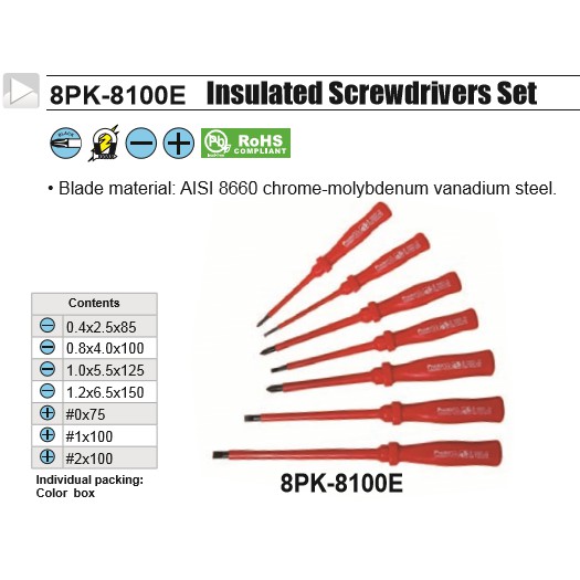 Pro'sKit 8PK-8100E Insulated Screwdriver Set (1000V) - 100% New & Original