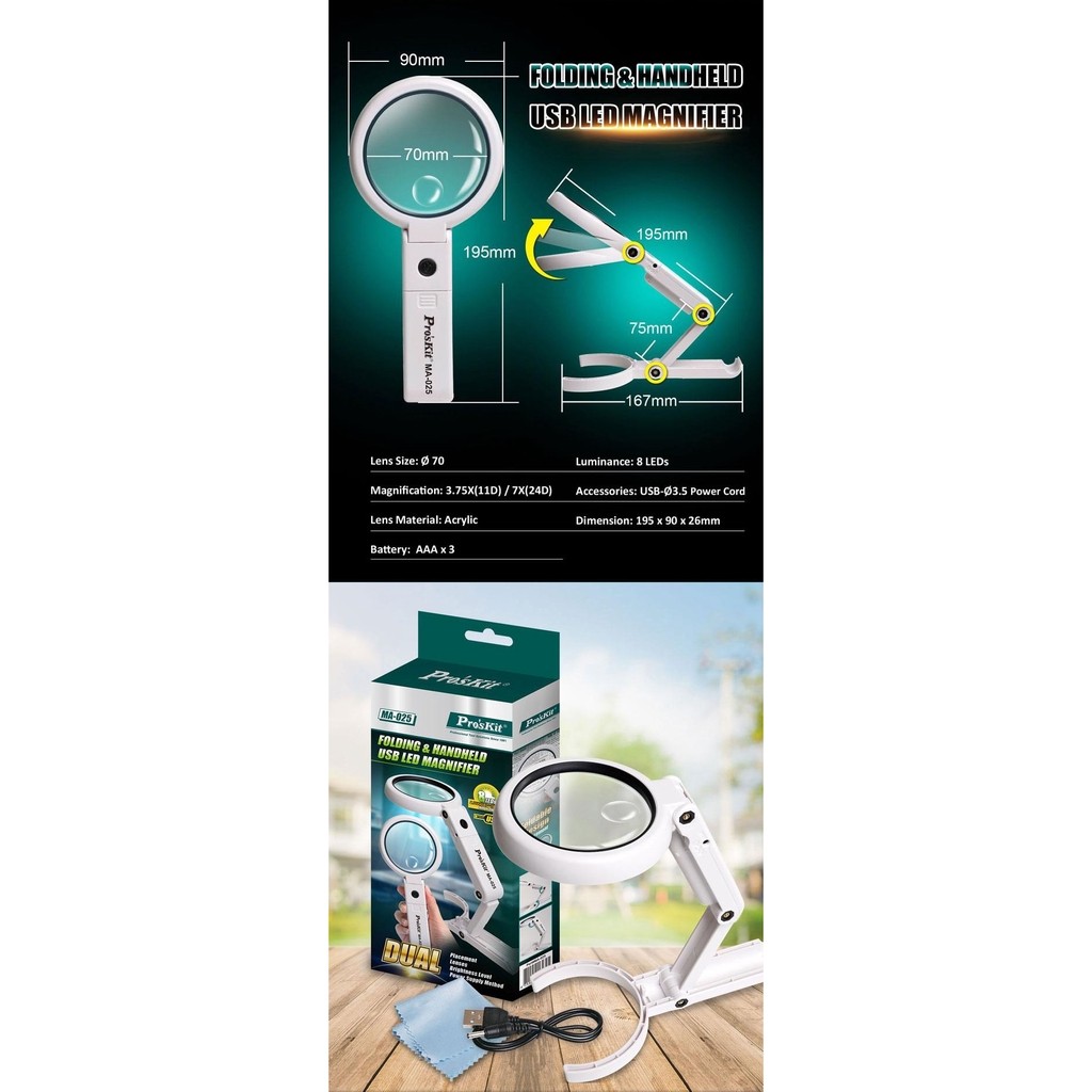 Pro'sKit MA-025 3.75/7X Folding & Handheld USB LED Magnifier