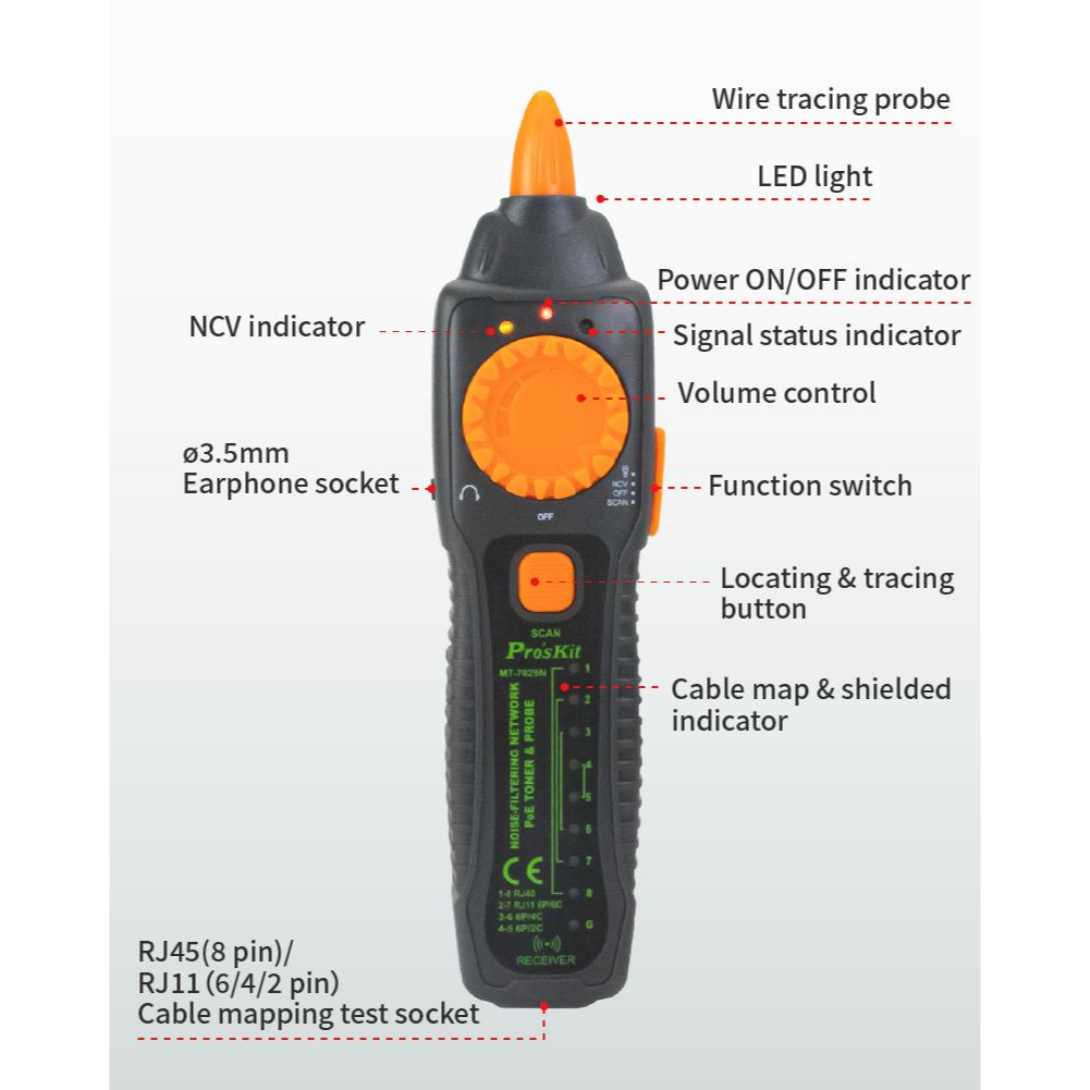 Pro'sKit MT-7029N Noise-Filtering Network PoE Toner & Probe Kit