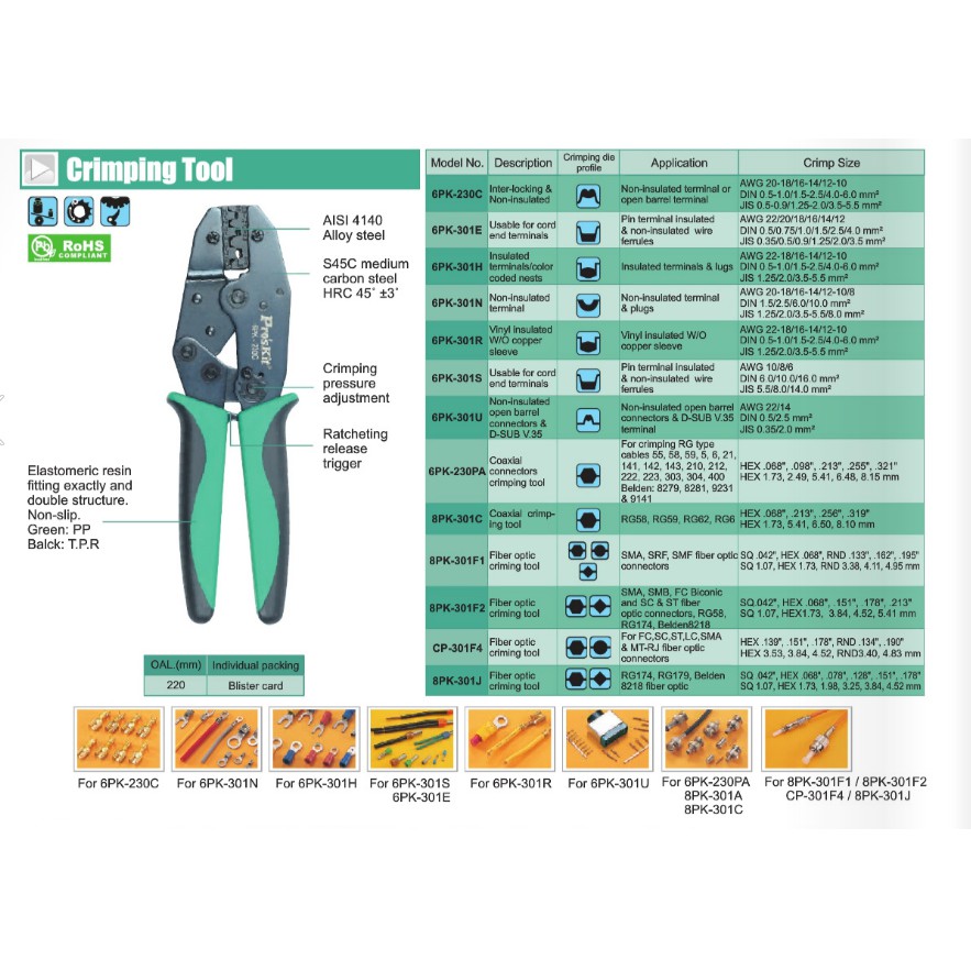 Pro'skit 8PK-301F1 Fiber Optic Crimping Tool (220mm)