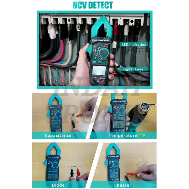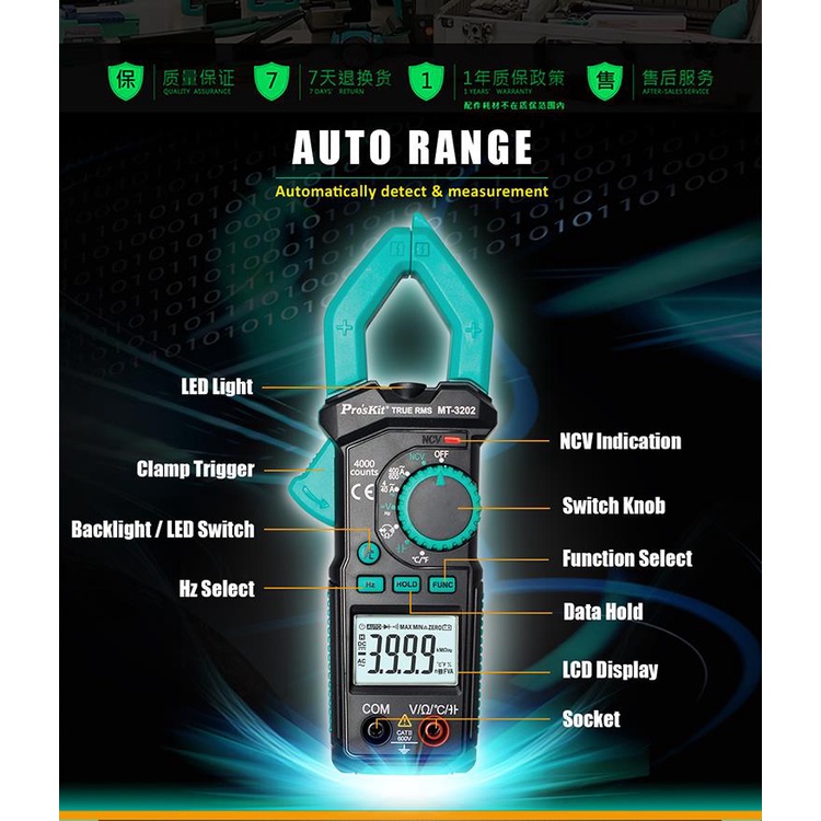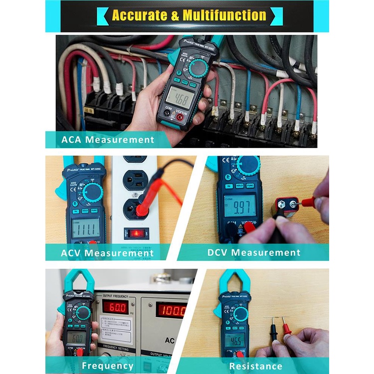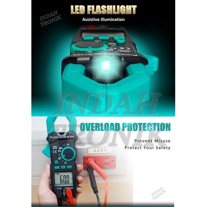 Pro'skit MT-3202 3-3/4 Digital Clamp Meter Auto Range True RMS NCV Voltage Tester Multimeter
