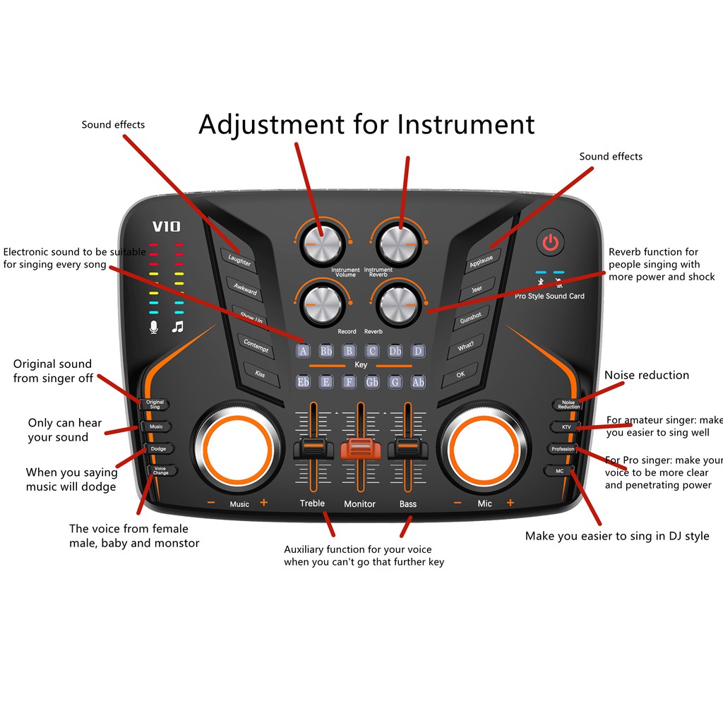 Pro Musical Sound Card V10 Audio Interface Home Studio Recording Soundcards For KTV&Record (V10)
