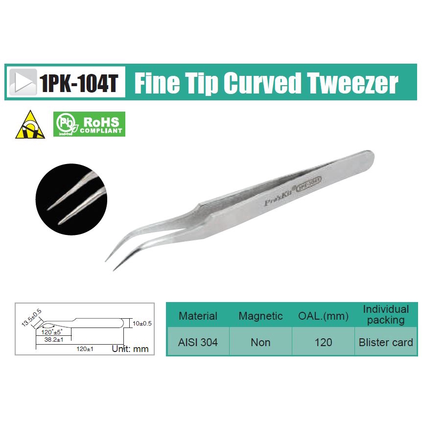 Pro'sKit 1PK-104T Fine Tip Curved Tweezer - 120mm (Taiwan)