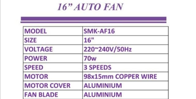 ProSMK 16'inc SMK-AF16 AUTO FAN(Aluminum fan blade)