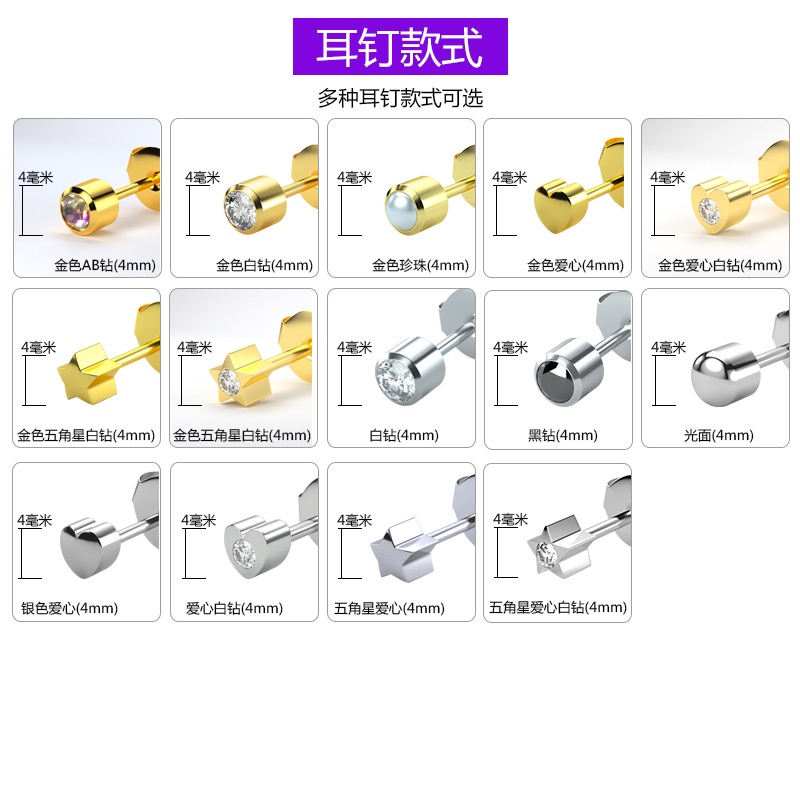 Profesional Ear Piercing Gun Tool Set 12pair Birthstone Gold Sliver Diamond Earring Jewelry Ear Percing Earrings Kit