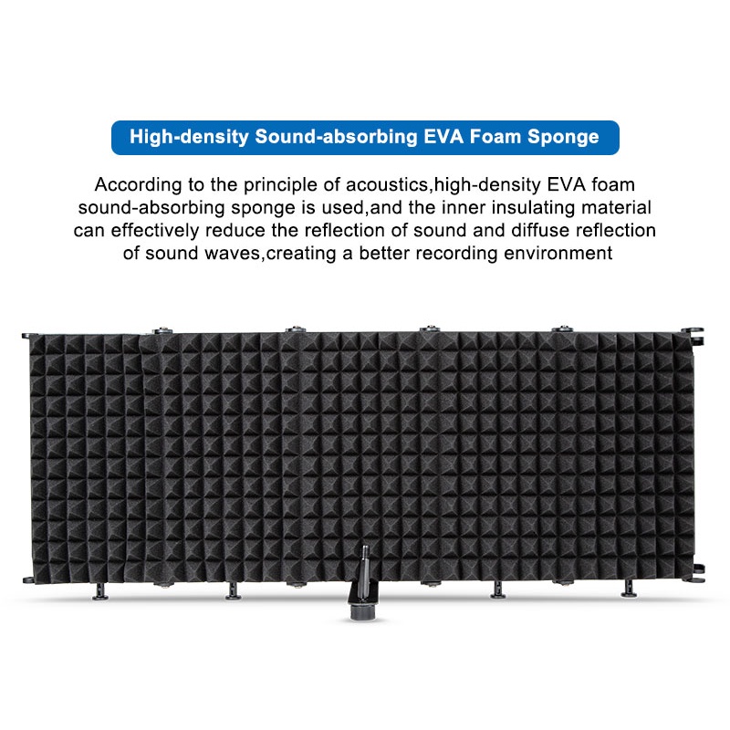 Professional Microphone Isolation Shield 5 Panels Foam Soundproof Screen Mic Stand for Studio Recording