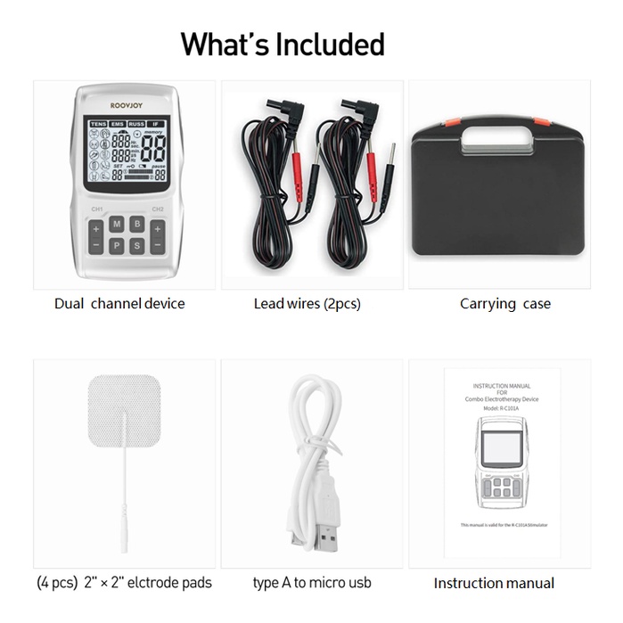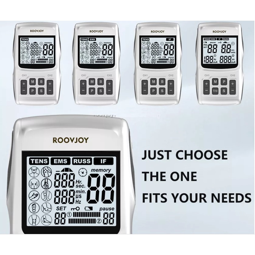 Professional ROOVJOY 4-IN-1 Interferential And Russian Stimulation Rechargeable Massager Portable TENS Unit EMS Muscle