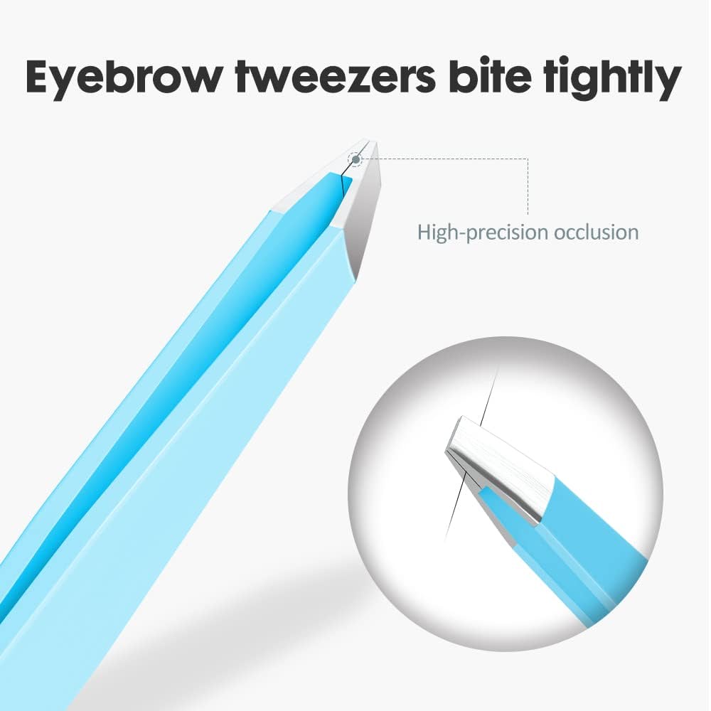 Professional Stainless Steel Tweezers Eye Brow Clips Face Hair Removal Tweezers Pink Slanted Black Tip Point Face Harmless Makeup Beauty Tool