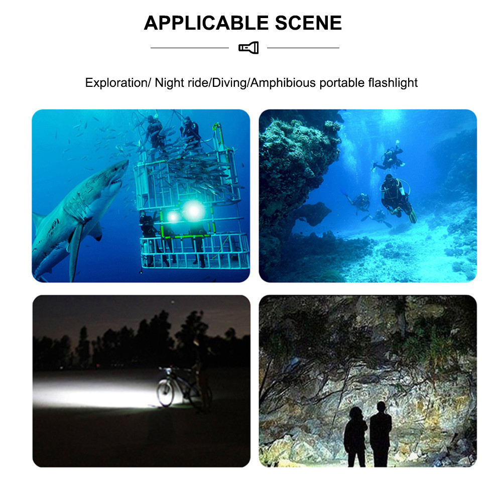 Professional Underwater Diving Flashlight LED Underwater 300M SOS Waterprood Torch Press Switch Scuba Lamp Outdoor Exploration