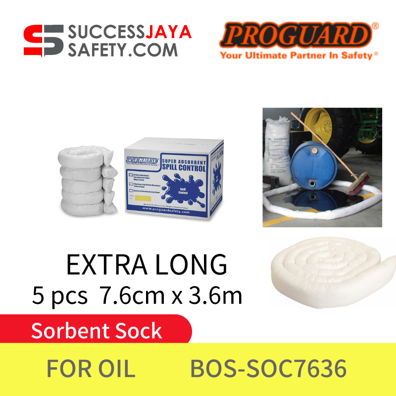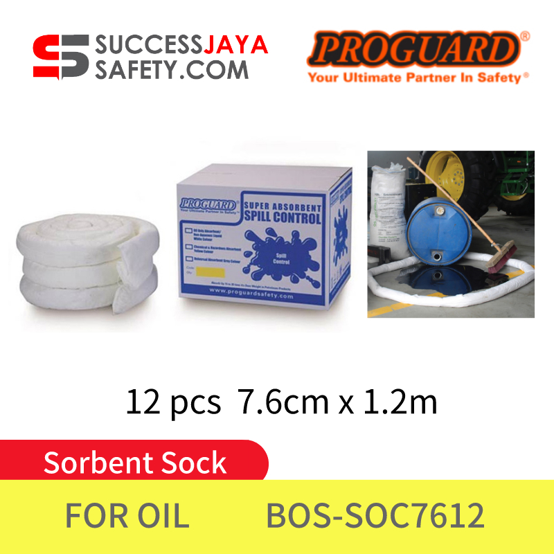 Proguard Oil Only Sorbent Sock Fully Usable High Absorbent BOS-SOC7612 / BOS-SOC7636 cellulosic maintenance corners