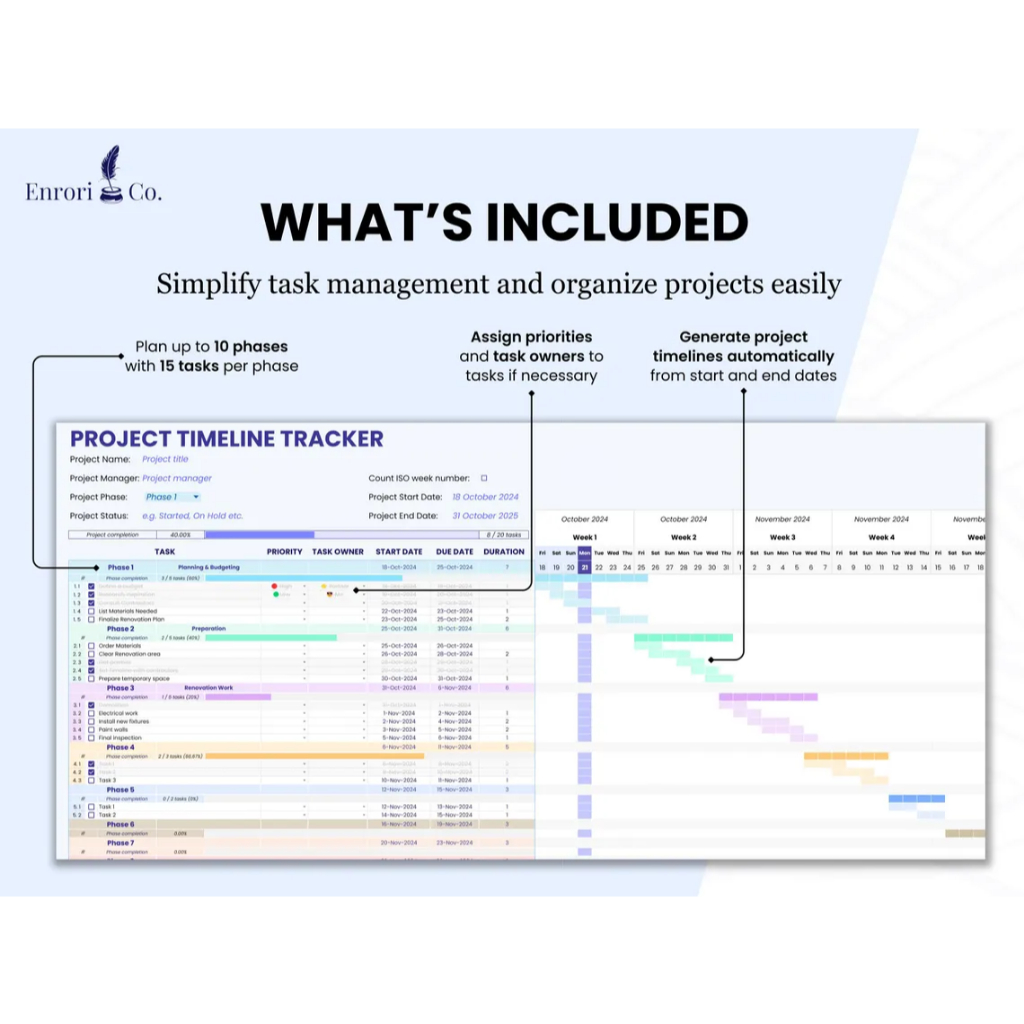 Project Timeline Tracker Gantt Chart Small Business Project Planner Task Tracker To Do List Project Management