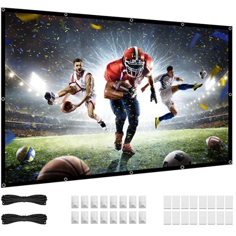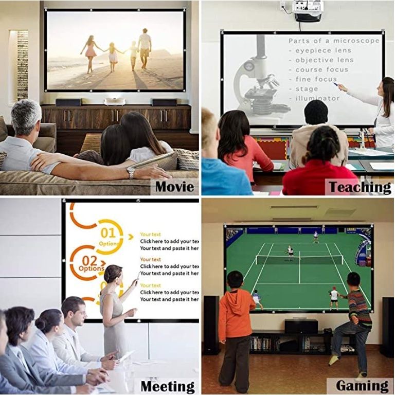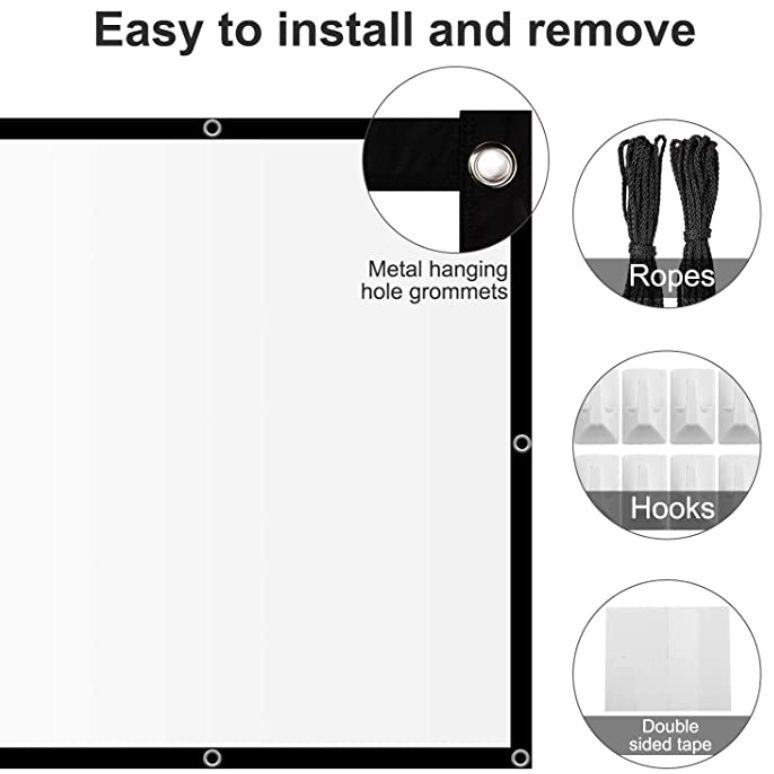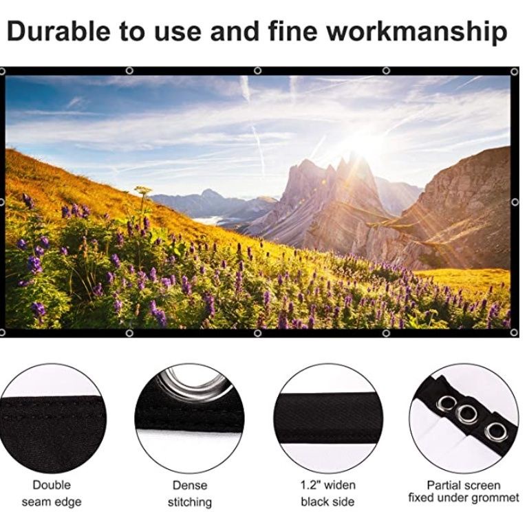 Projector Screen 100 inch, DURABLE Small Projection Movie Screen Grommets for Outdoor Indoor Home Theater