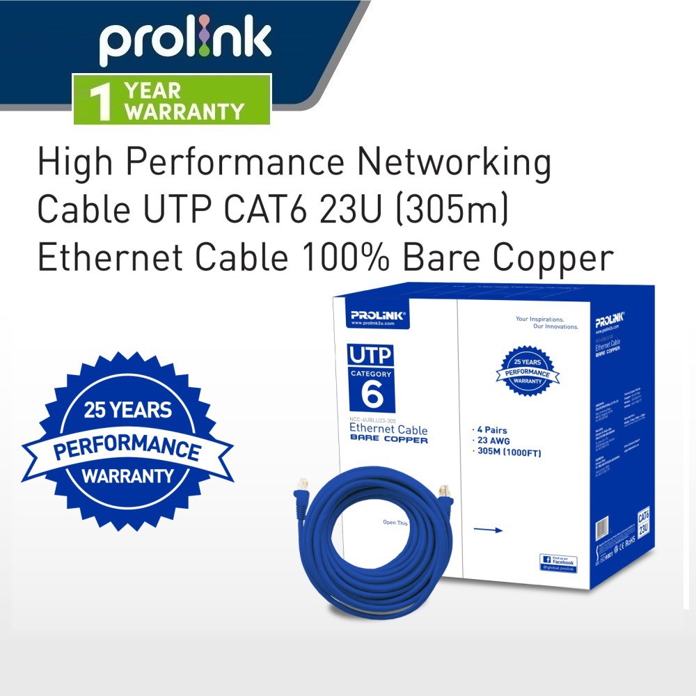 Prolink UTP CAT5E 24M/CAT6 23M/CAT6 24M 100% Solid Full Copper UTP Network Ethernet Cable 25-Year Performance Guarantee