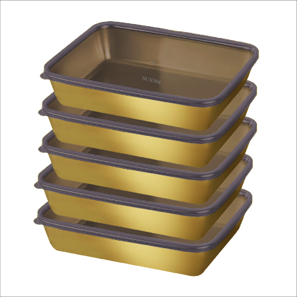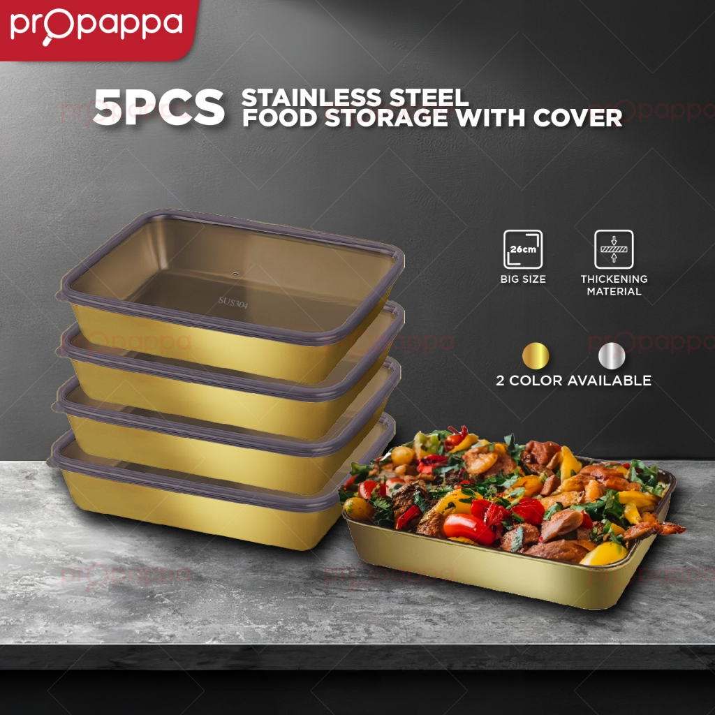 Propappa - 5Pcs Stainless Steel Food Storage Box Food Container Tray | Bekas Simpanan Makanan 5 Unit Dengan Penutup