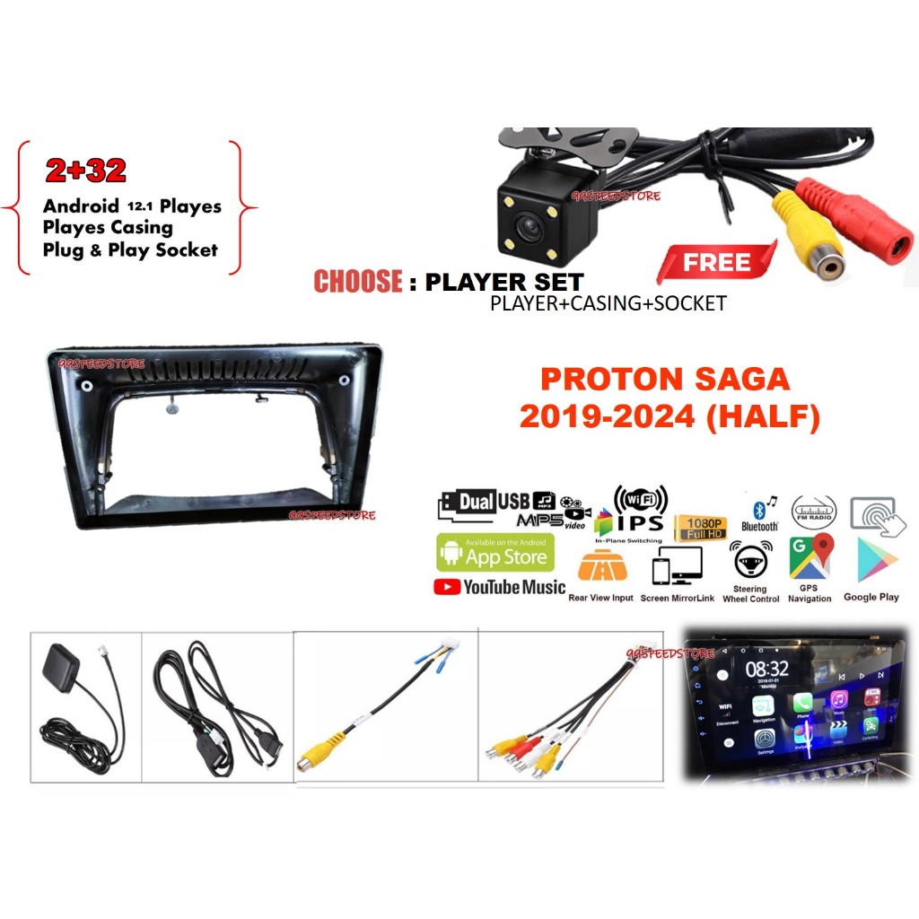 Proton SAGA 2019 - 2024 (half) android player 9'' inch plug and play with OEM casing
