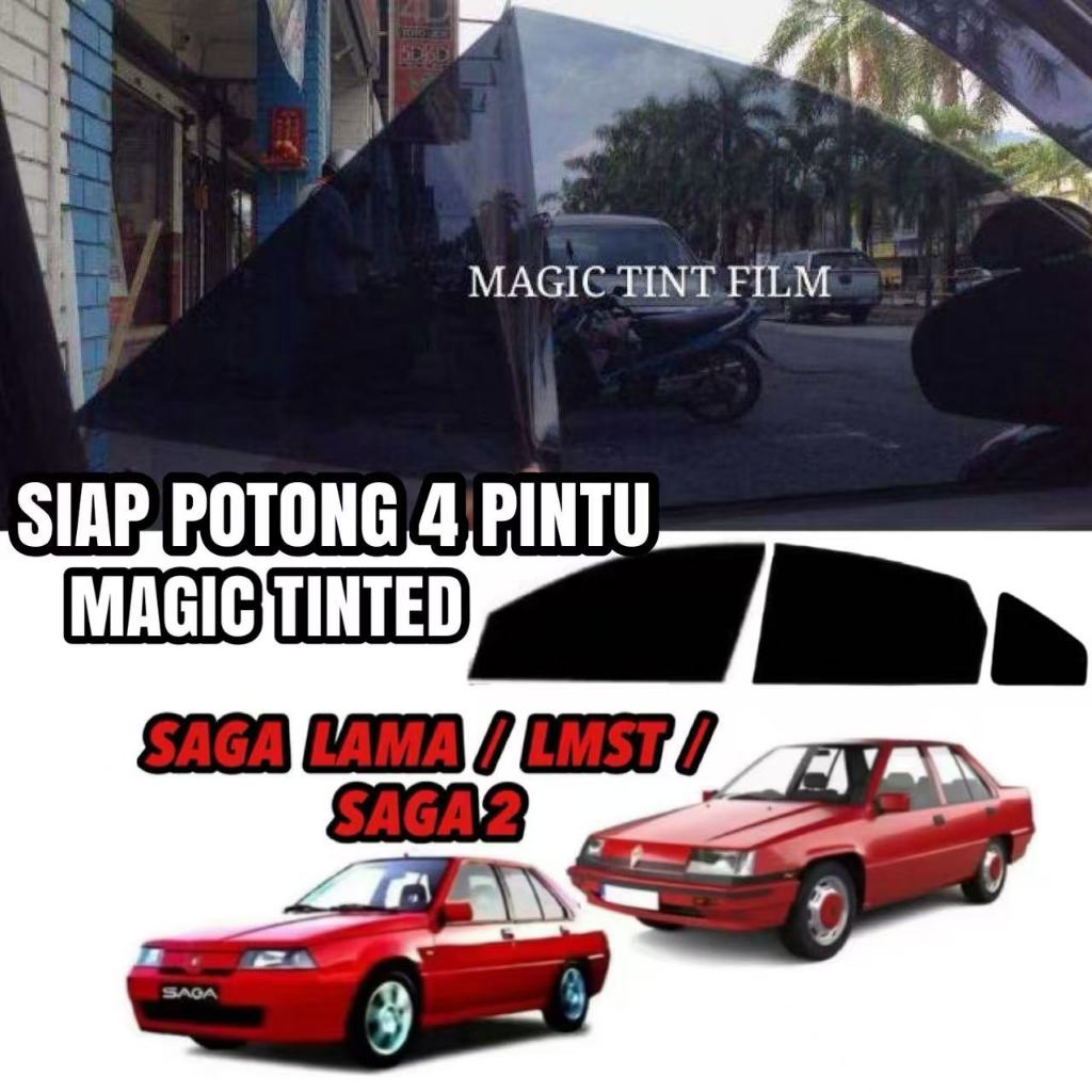Proton Saga/Iswara/Saga2 LMST 4 Pintu Siap Potong Magic Tinted 80% Gelap Hitam Pre Cut Reusable Removable Senang Pasang