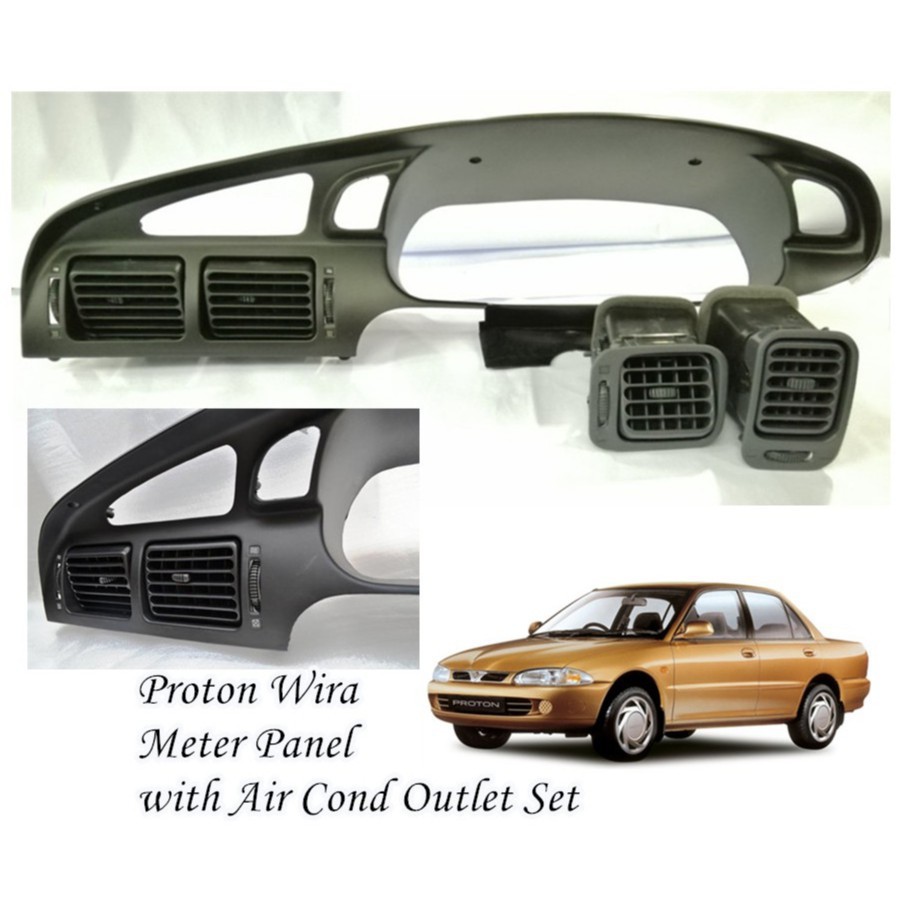 Proton Wira/Satria Dashboard Meter Cluster Meter Panel With Aircond Vent With (Radio Panel COLOR SHINNY BLACK) - Black