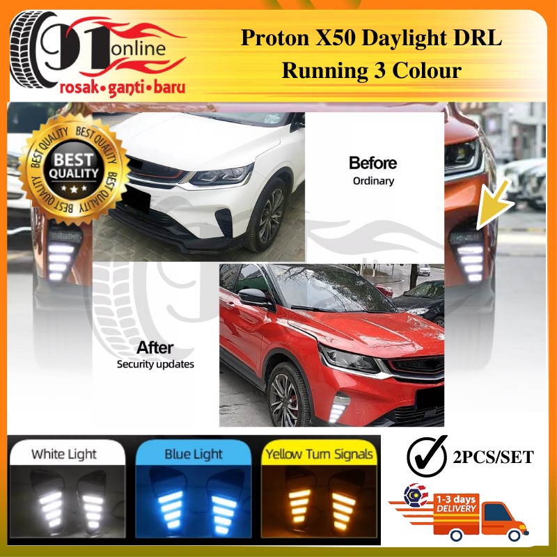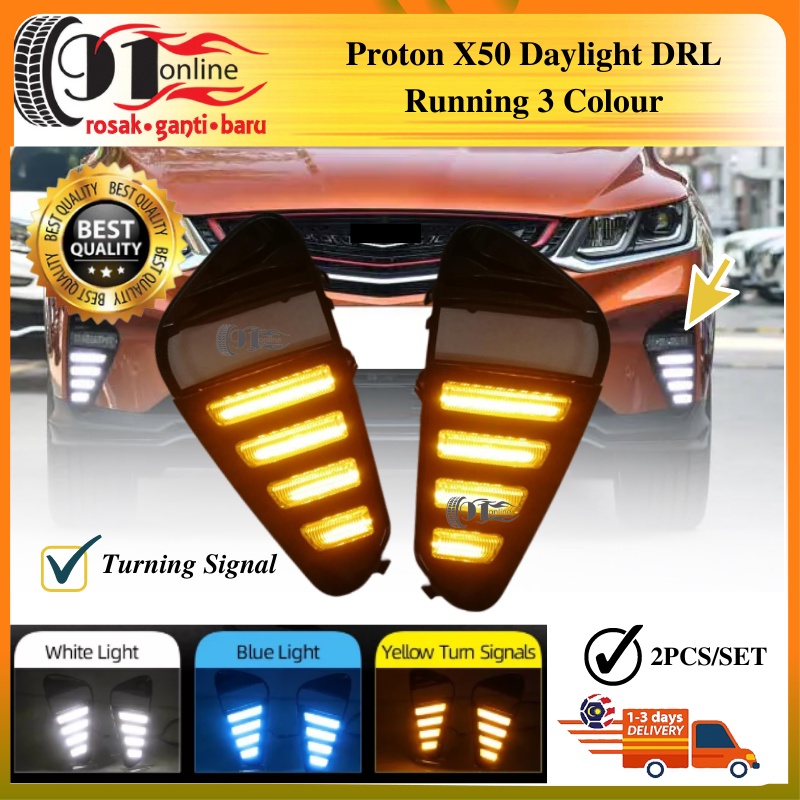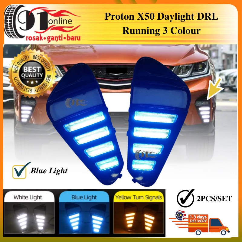 Proton X50 Front Daylight Running LED Foglamp Mustang Reflector Signal 4 Line Daytime Running Light DRL