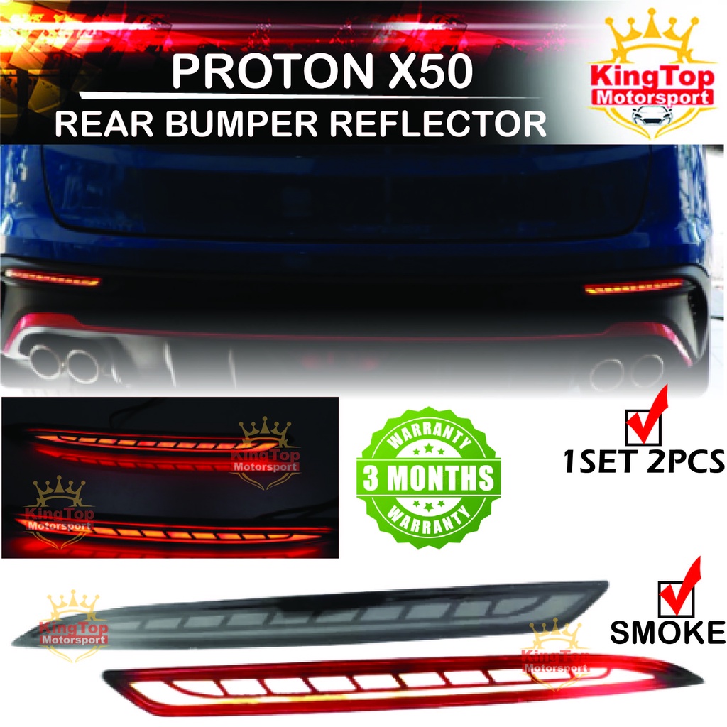 Proton X50 Rear Bumper Reflector Lamp LED with Sequential Signal Mode 1 set 2 pcs ( RED / SMOKE )